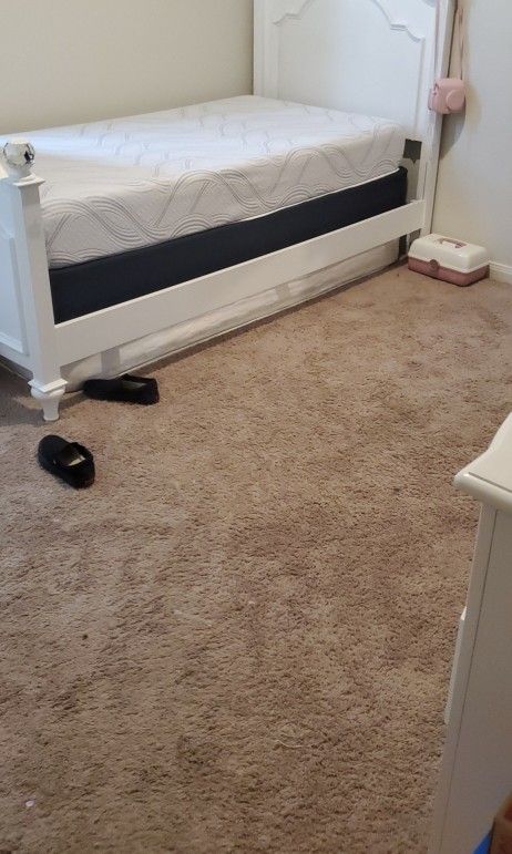 Twin bed with mattress. Dresser has 9 drawers. Dresser missing drawer knobs. But over all good condition. In storage so must pick up and bring someone to load up. Storage located I10. 250 OBO Bed is unassembled and missing screws.