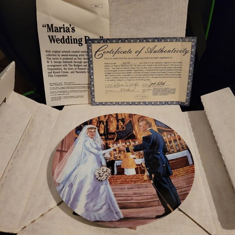 "MARIA'S WEDDING DAY" Sound Of Music Collectors Plate Certificate of Authenticity & Plates Information included $25.00 OBO