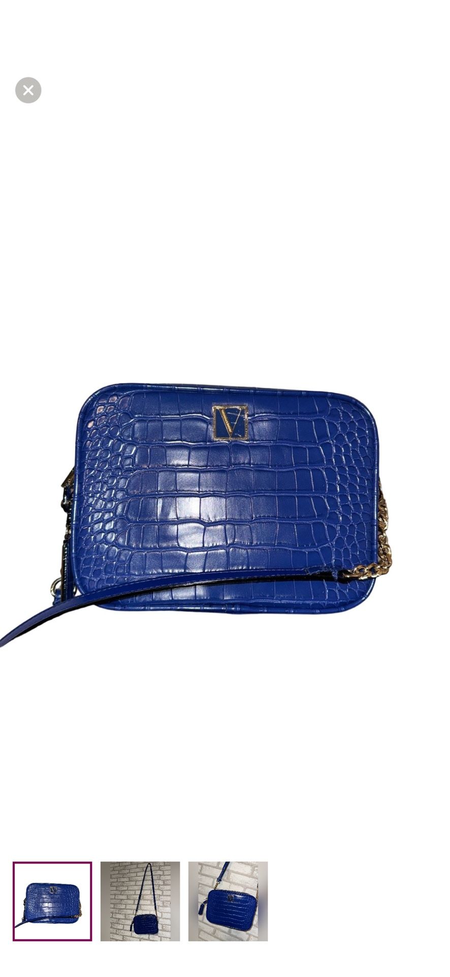 Turn heads with this stunning Victoria’s Secret crossbody in a bold cobalt blue! • Faux crocodile embossed design • Adjustable strap with gold chain + faux leather detail • Zip closure with logo pull tab • Iconic gold “V” Victoria’s Secret logo at front • Medium-size crossbody: roomy enough for everyday essentials while staying sleek ✨ Perfect statement bag for casual outfits, travel, or a night out. Condition: Excellent pre-owned condition (very clean, no major flaws). Approx. Measurements: • Width: 9.5” • Height: 6.5” • Depth: 2.5” • Strap Drop: Adjustable