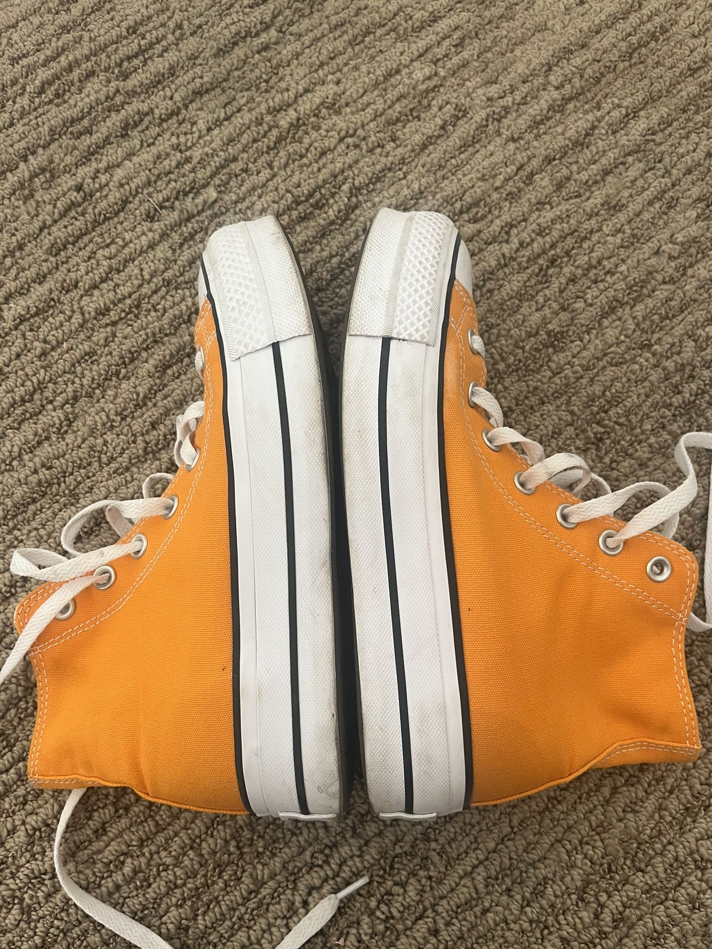 size 7.5 women’s platform worn 3 times the orange color is lighter on the inside CASH AND PICKUP ONLY