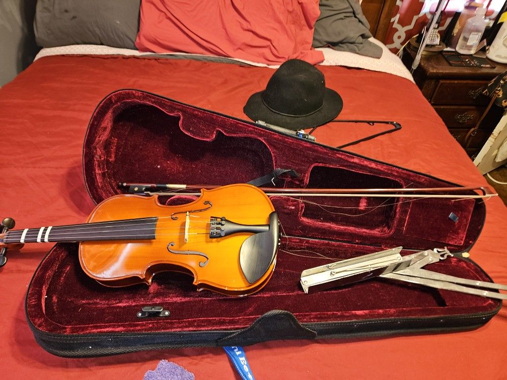 Nice violo only used one year about 20 years ago. Needs a new arm to play on.
