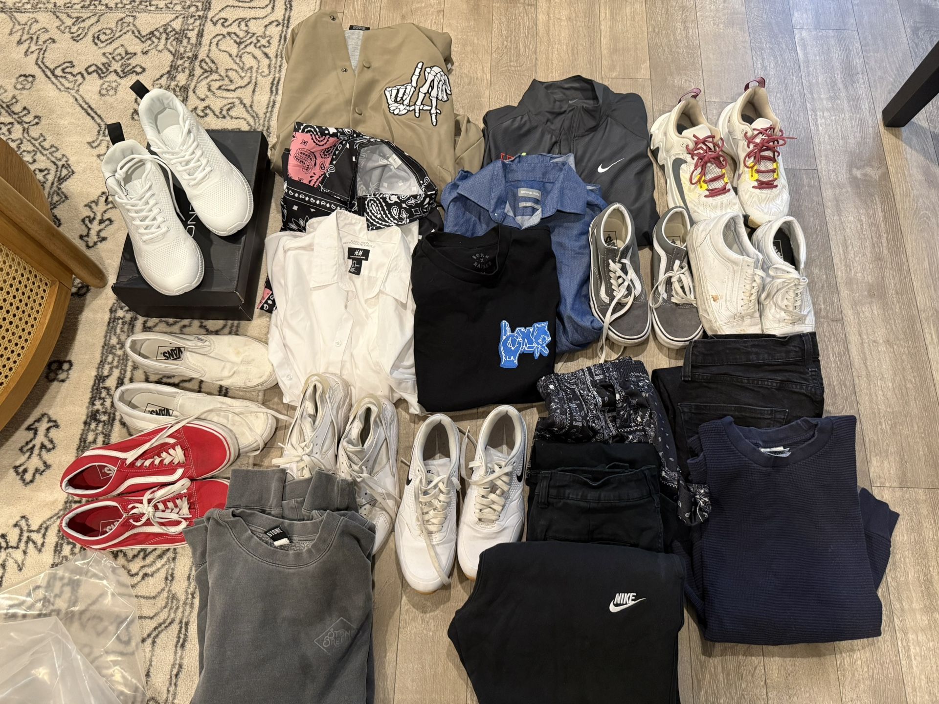Men’s clothing.. brands from Adidas Ben Davis Nike Sizes ranging M-L Shoes 7.5 men Some new with tag! $50 entire bag OBO (must take entire bag)