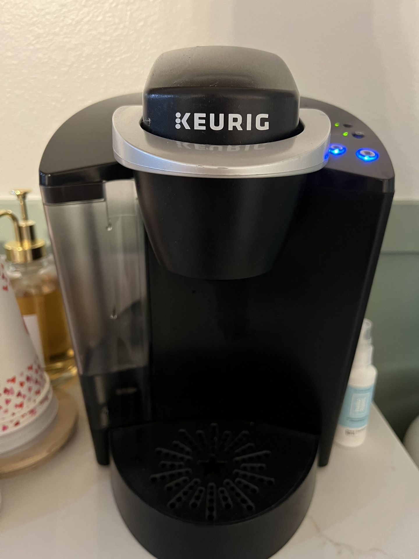 Single serve coffee maker, model K50. In perfect condition. • BREWS MULTIPLE K-CUP POD SIZES: (6, 8, 10 oz.) – the most popular K-Cup pod brew sizes. Use the 6oz brew size to achieve the strongest brew. • LARGE 48 oz. WATER RESERVOIR: Allows you to brew 6+ cups before having to refill, saving you time and simplifying your morning routine. The water reservoir is removable, making it easy to refill whenever you need to. • AUTO-OFF: An auto-off feature is easily programmed to turn off your coffee maker after it has been idle for two hours, helping to save energy. • SIMPLE BUTTON CONTROLS: Just insert a pod, select your desired cup brew size, and brew a great-tasting cup in under a minute.