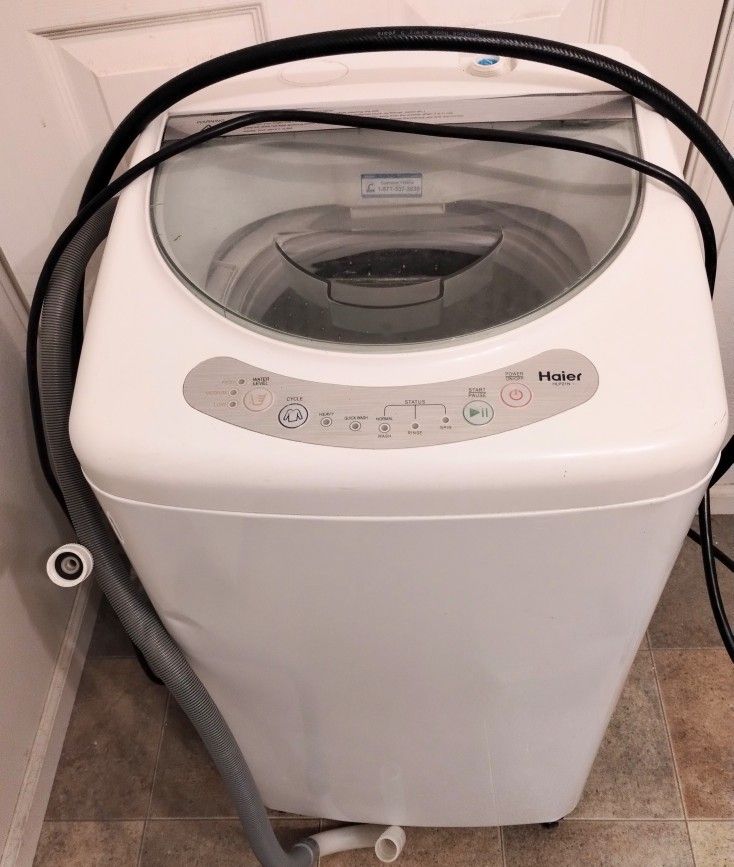 Used once by me, the machine works well, been stored for the past year. Powers up fine, cord protector needs to be reattached to the back of the machine. No exposed wires, see pictures. It is about 30" tall 17" wide and17" deep. Let me know if you have questions.