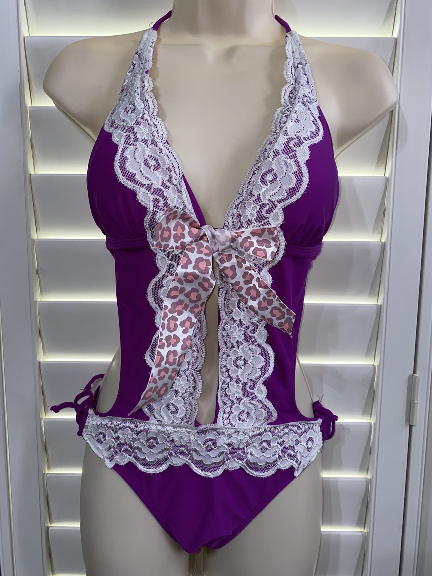 PURPLE LACE SCRUNCH BUTT MONOKINI BIKINI