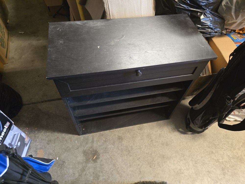 Shoe dresser with drawer and 3 shelves Good condition, just slightly dirty but can be easily cleaned. Legs are in the drawer.