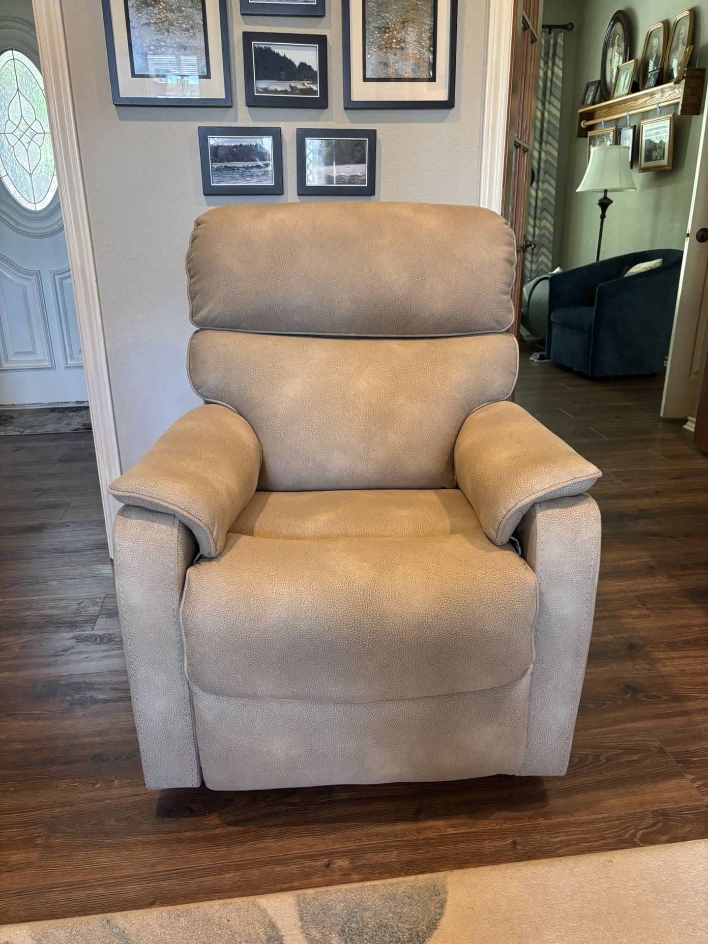 This recliner chair is almost brand new, purchased for my grandma but her back didn't sit well in it so we are selling it. - originally 400$ - recliner - super soft fabric