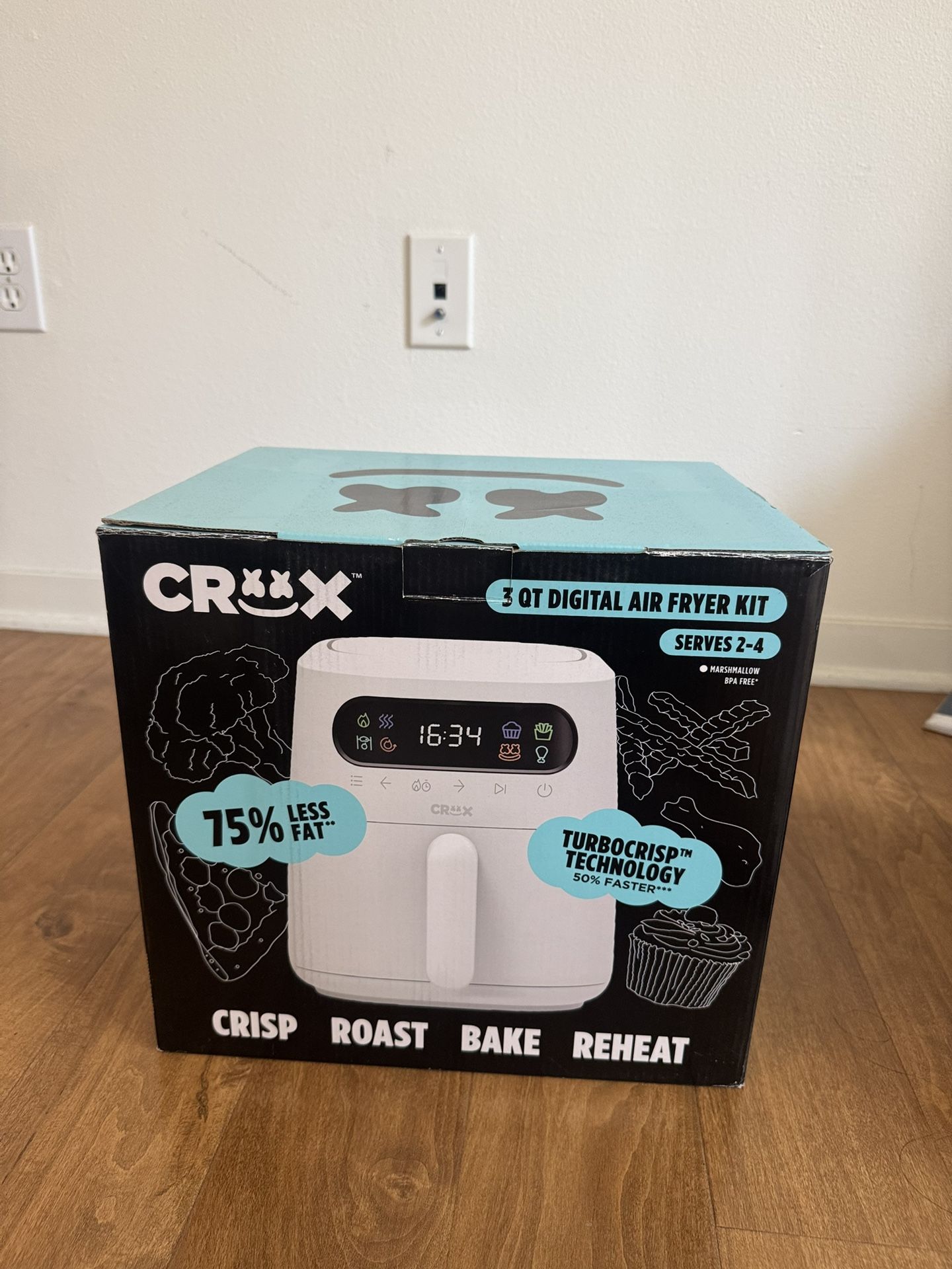 Only used once. 3 QT digital air fryer. Does not include the cupcake molds.