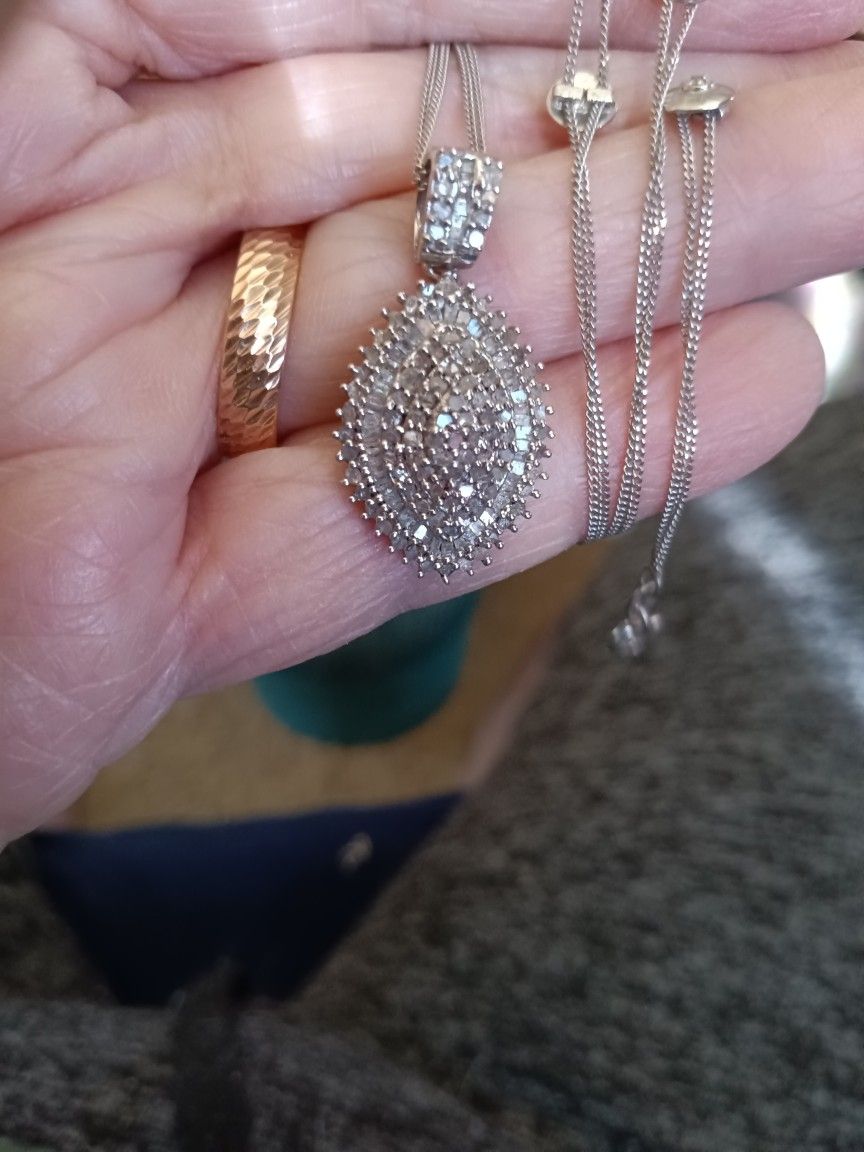 Dual chained with 6 diamond stations. While not absolute white diamonds they are fully facetted and sparkle as they should.