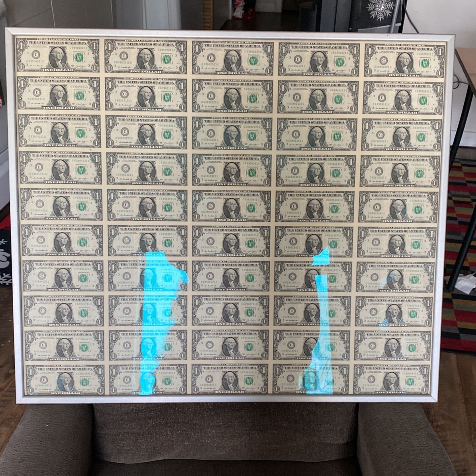 Pliego de 50 billetes sin cortar de a $1 Con frame metálico