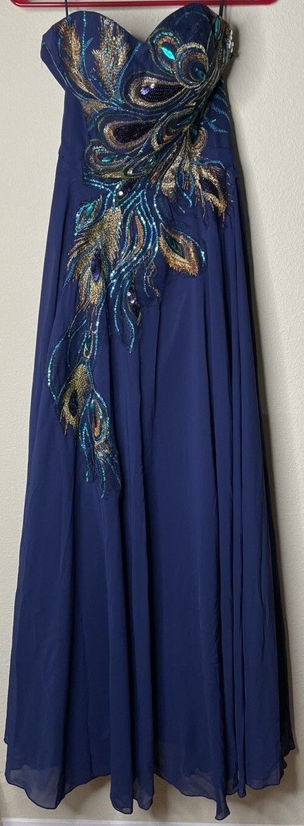 Grace Karin Blue Peacock Beaded Strapless Corset Dress Gown