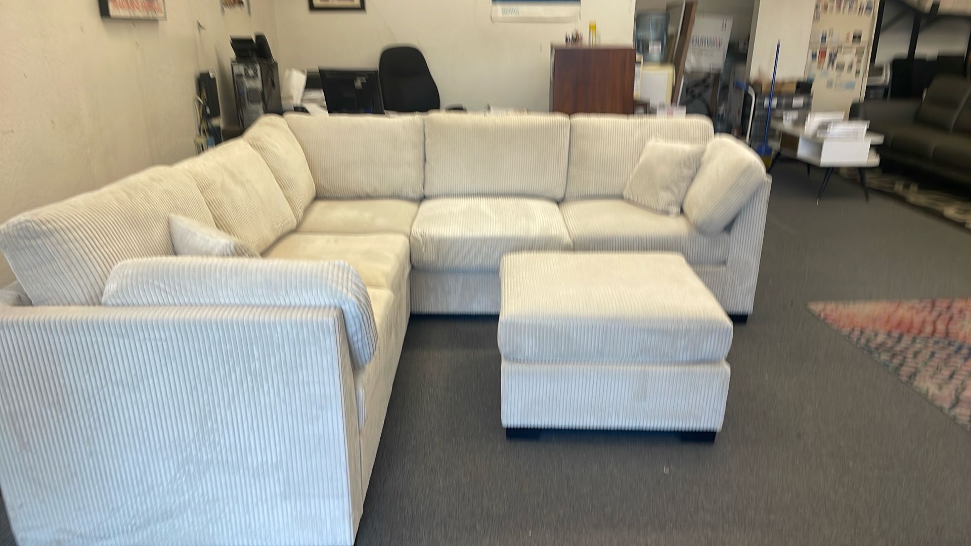 New 99x99 Corduroy Sectional Couch With Ottoman / Free Delivery