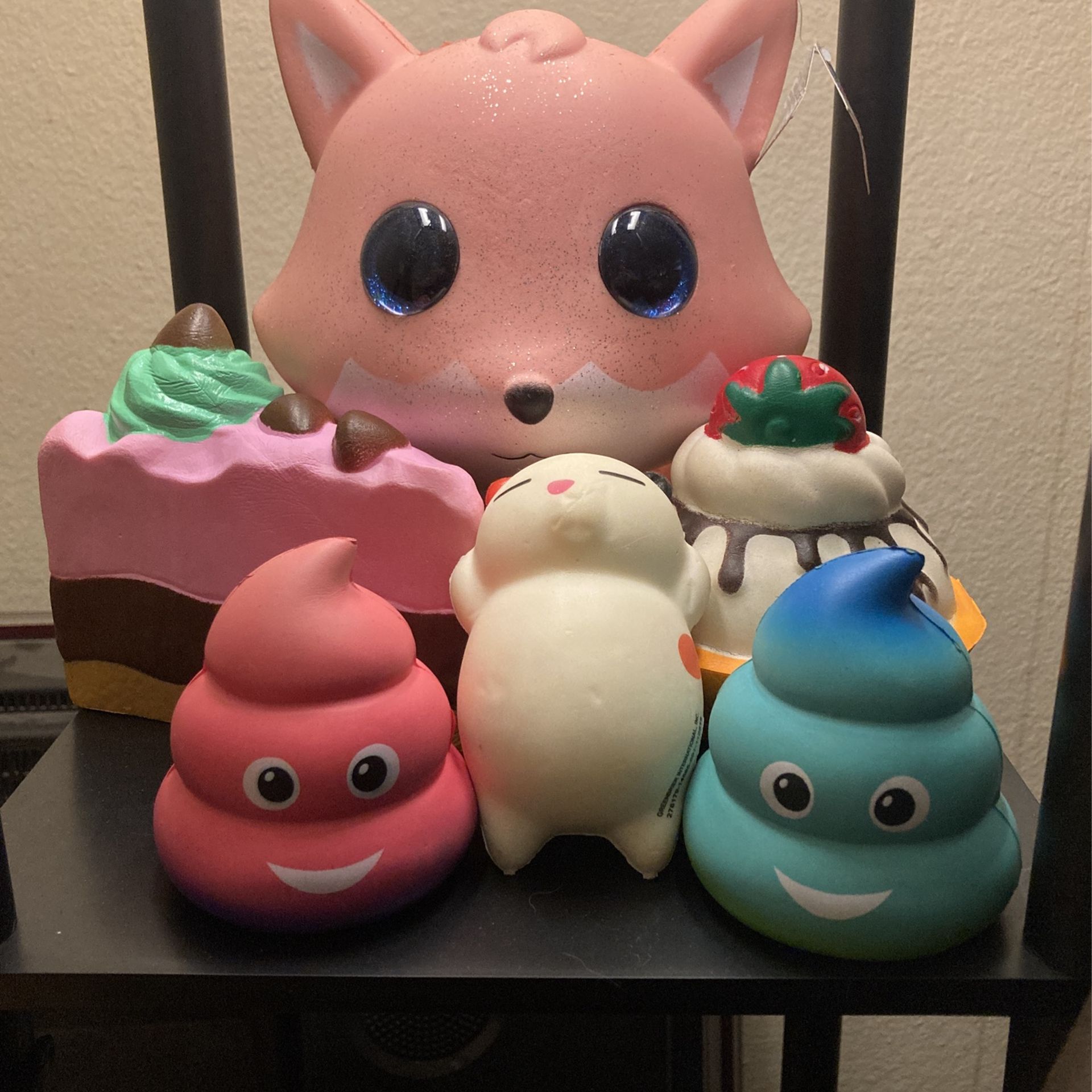 6 squishies for the price of $10. They are all used, but still squishy and in good condition.