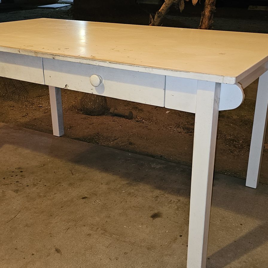 Craft Table kindergarten to 5th grade used minor paint and scratches. DIMENSIONS Overall: 27" wide x 48" long x 24" high Clearance under apron: 18.5" high Drawer Interior (2): 14" long x 13" deep x 3" high Legs: 2" square Weight: 57 pounds