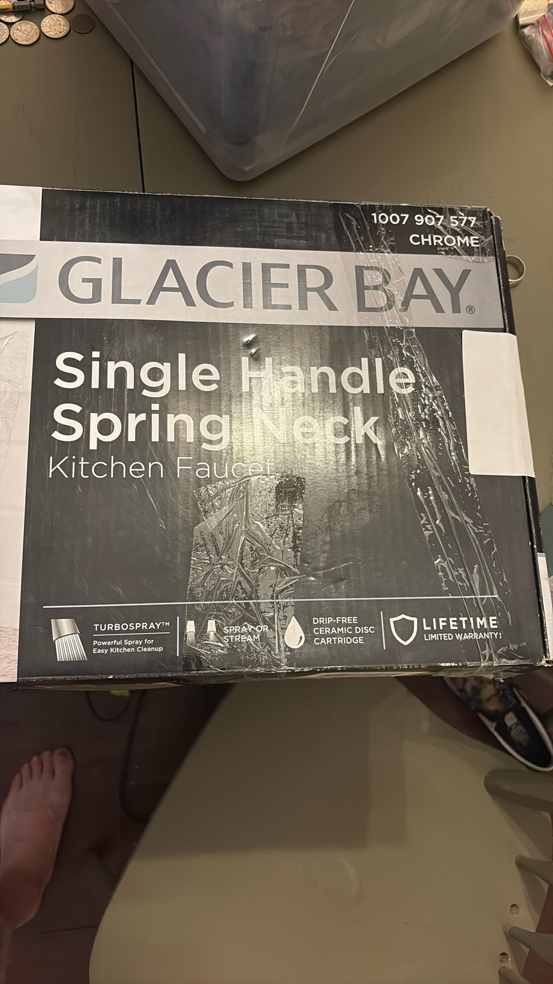 Brand new glacier Bay single handle spring neck, kitchen faucet, box has been opened to make sure all parts are there faucet was never installed