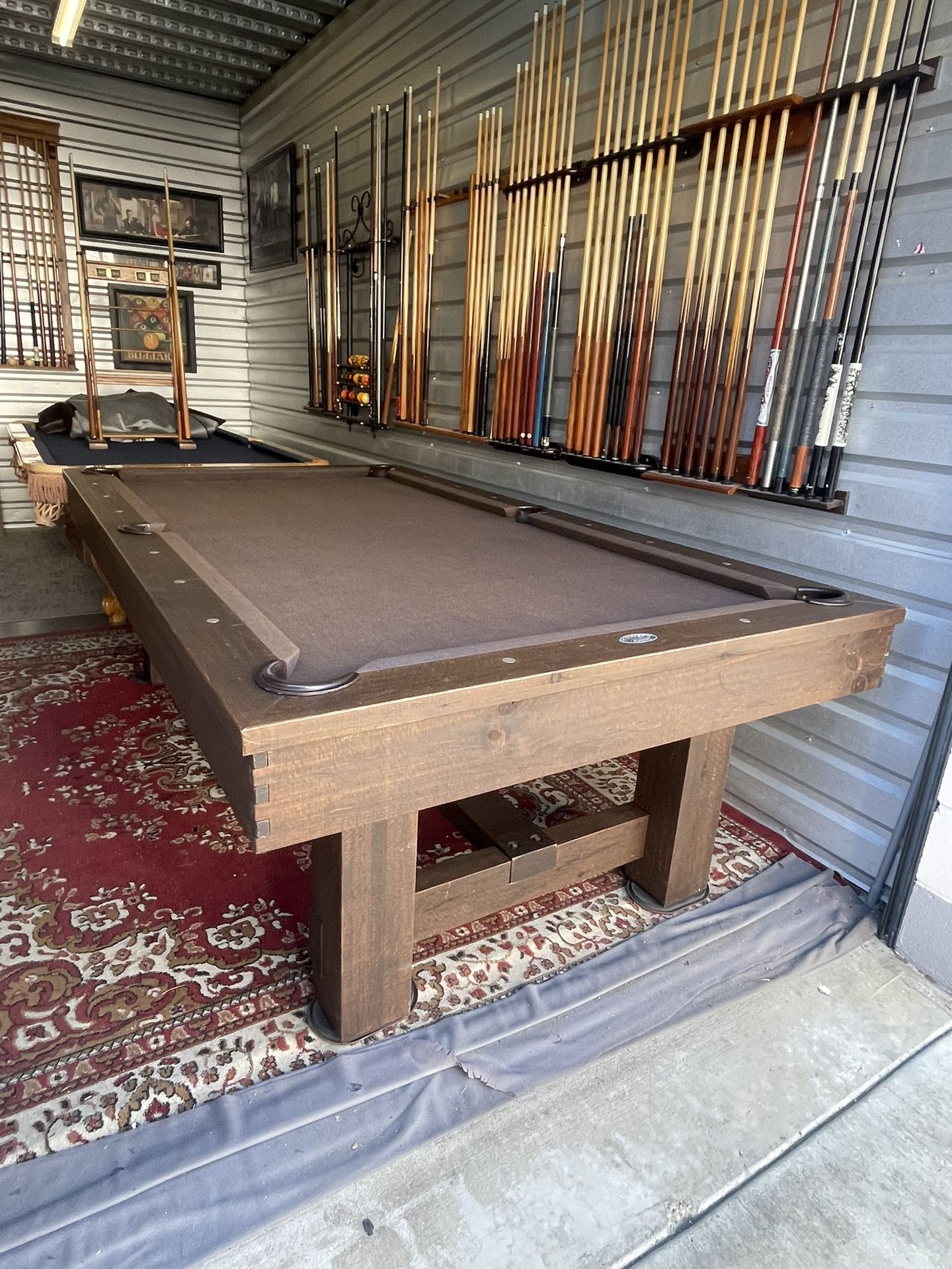 The table is in excellent shape Olhausen modern style pool table it has a custom drawer that holds accessories table will come with mew felt any color you like to pic 4 sticks triangle and balls with free delivery and set up .this table new cost around 10k after delivery with us price is $3900