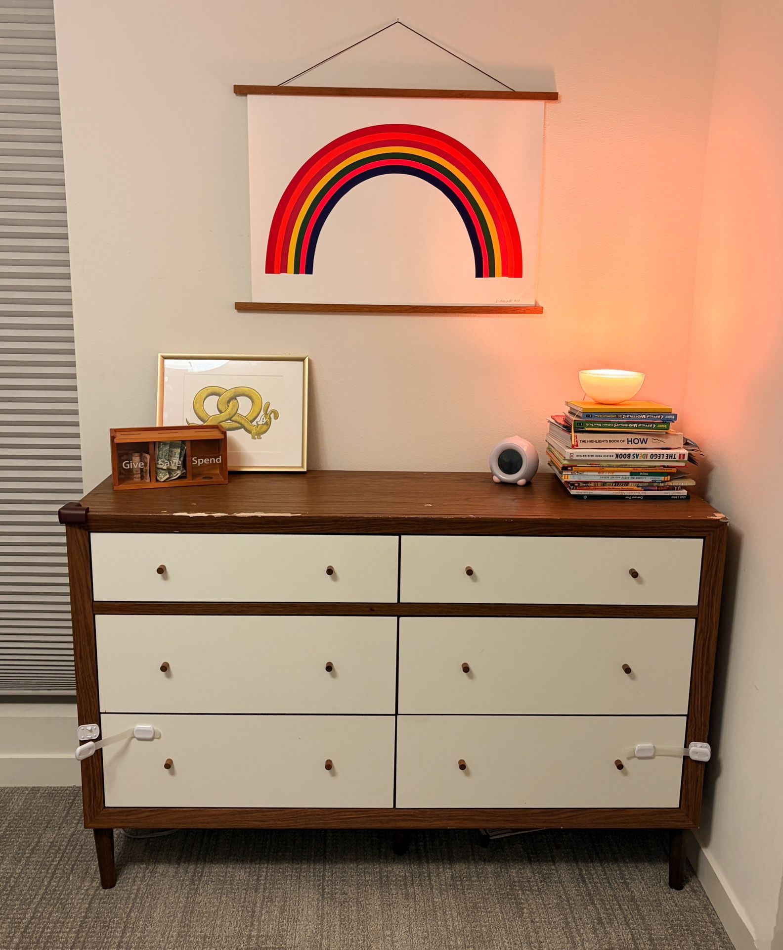 We’ve got a used dresser that looks pretty beat up on the top but is solid and works fine. It’s being used as a kids dresser (hence the drawer locks and corner pads) currently. The veneer on the top is in bad shape in multiple places and has peeled off (as shown in pics). See link for more info and dimensions: https://offerup.co/faYXKzQFnY?$deeplink_path=/redirect/ We have a dolly that you can use when transporting to a car. Pickup in West Seattle near Alki.