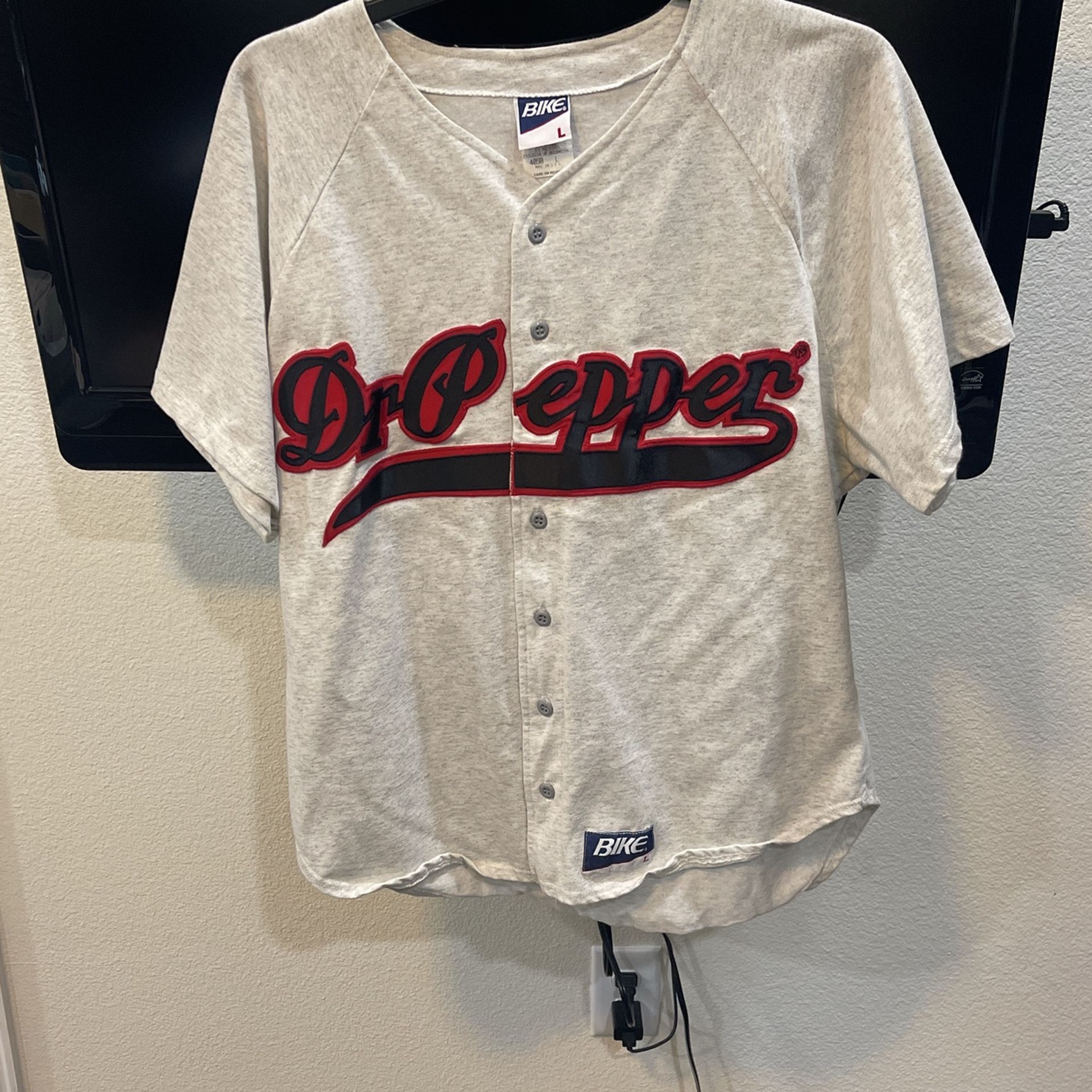 Cotton baseball shirt with Dr Pepper logo. Size is large.. excellent condition. This is a classic . Extremely hard to find.