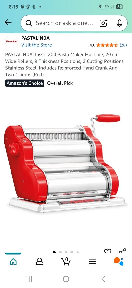 PASTALINDAClassic 200 Pasta Maker Machine, 20 cm Wide Rollers, 9 Thickness Positions, 2 Cutting Positions, Stainless Steel. Includes Reinforced Hand Crank And Two Clamps (Red) Got it as a gift !! In the box from amazon