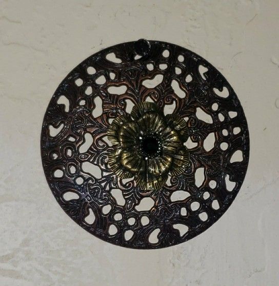 VINTAGE ORNATE BRASS FILIGREE FLORAL FLOWER BLACK BEADED EMBELLISHED WALL ART MANDALA