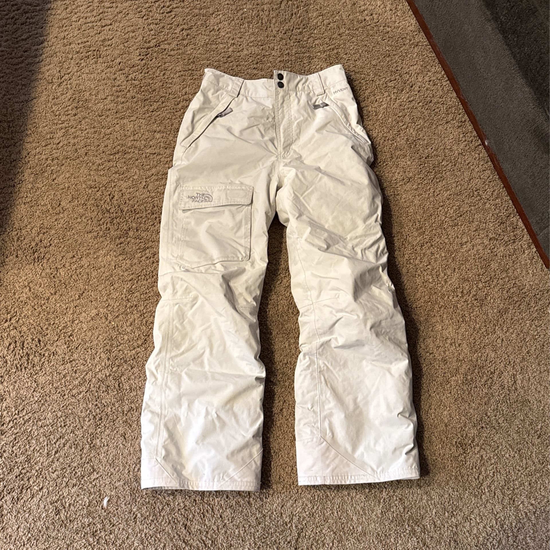 North Face Girls Large (12-14) Ski Pants Excellent condition, no marks, no, tears, and were hardly used. Beige/off-white/light grey depending on the light or your definition of color. :)