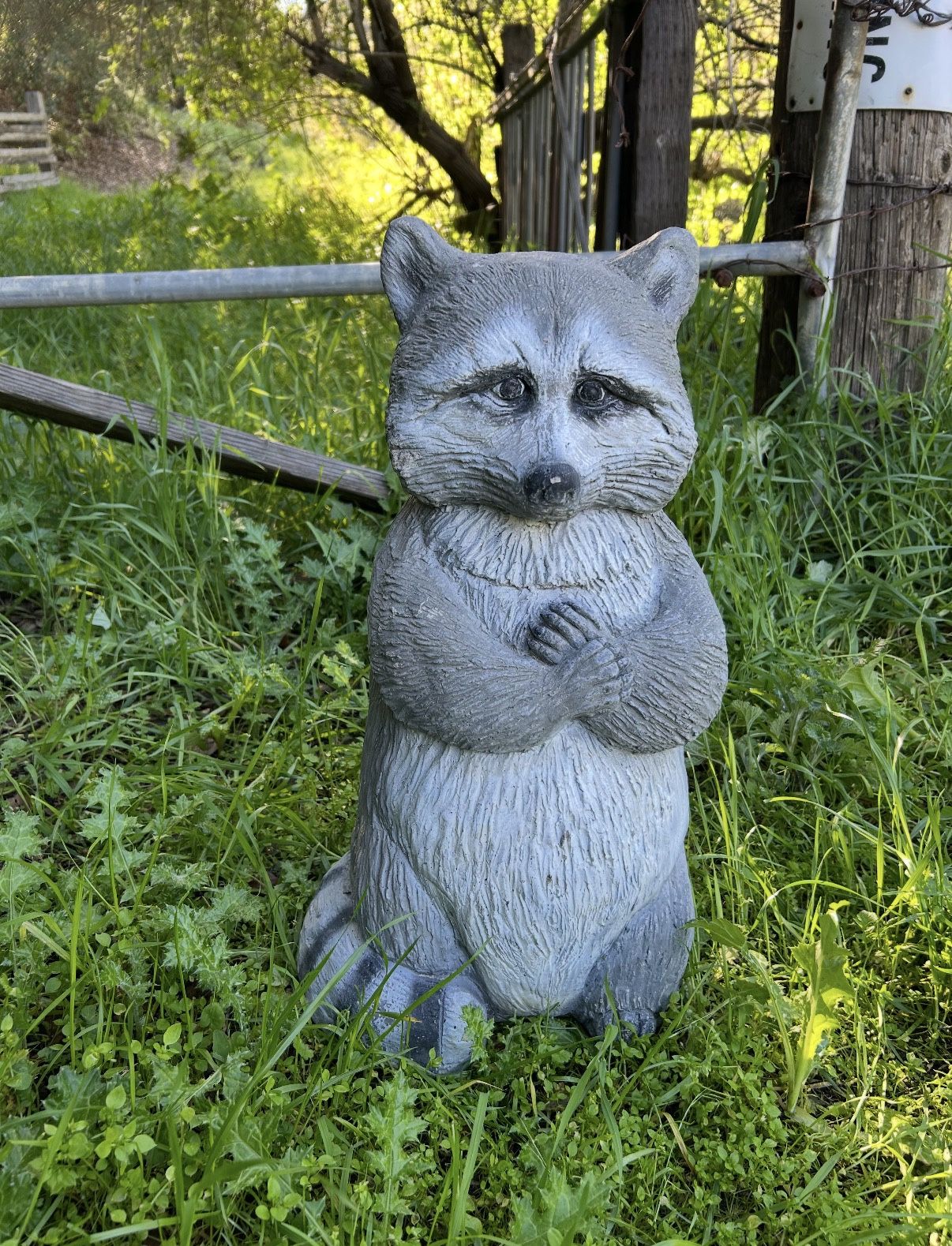 Vintage very HEAVY cement Ricky Racoon. He is adorable and measuring 21” tall x 11” w..great piece for your garden. No holds..xposted..pick up only chino hills..PRICE FIRM