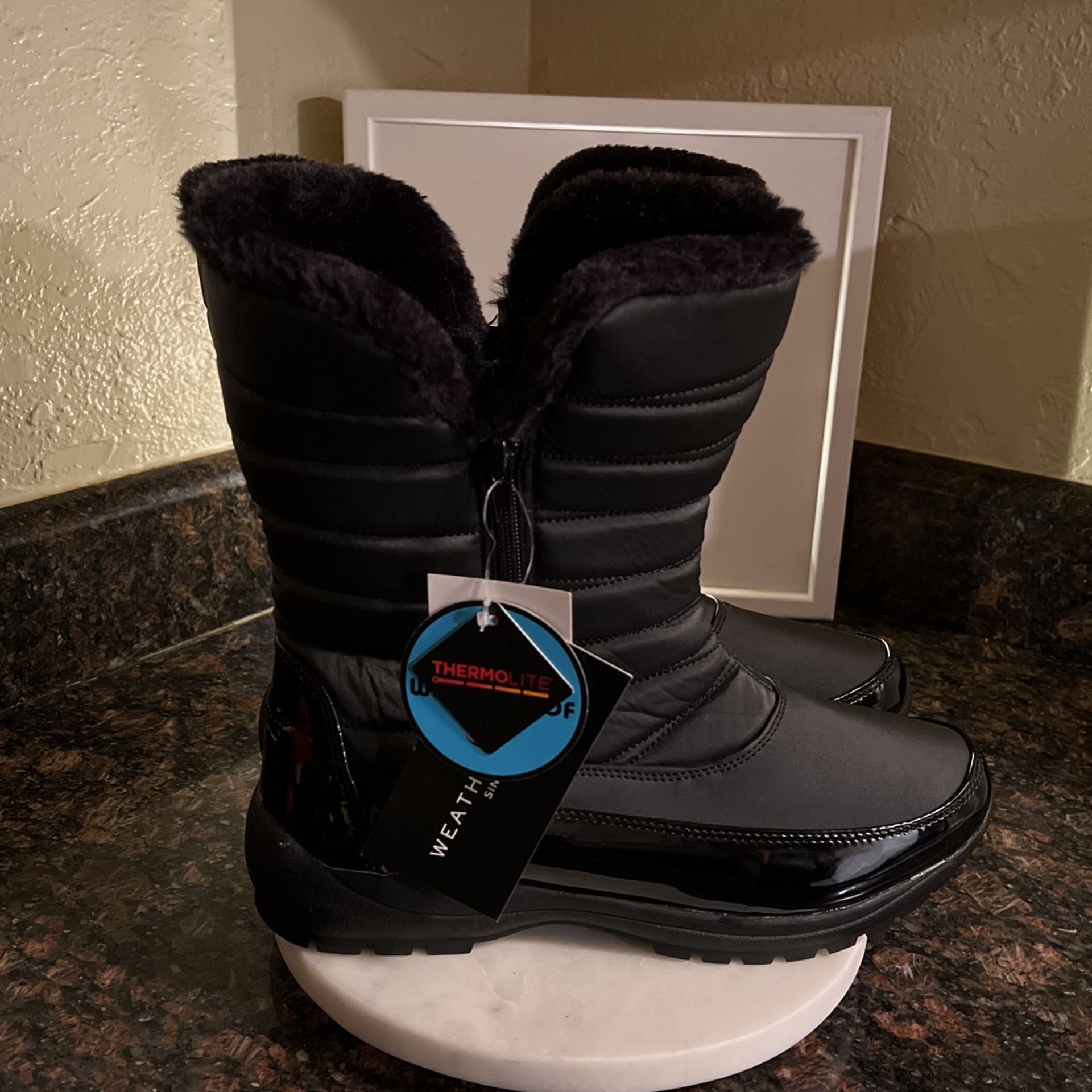 Totally new with tags Black weather proof boots THERMO LITE WATER PROOF BLACK WOMAN RAIN BOOTS SIZE 9