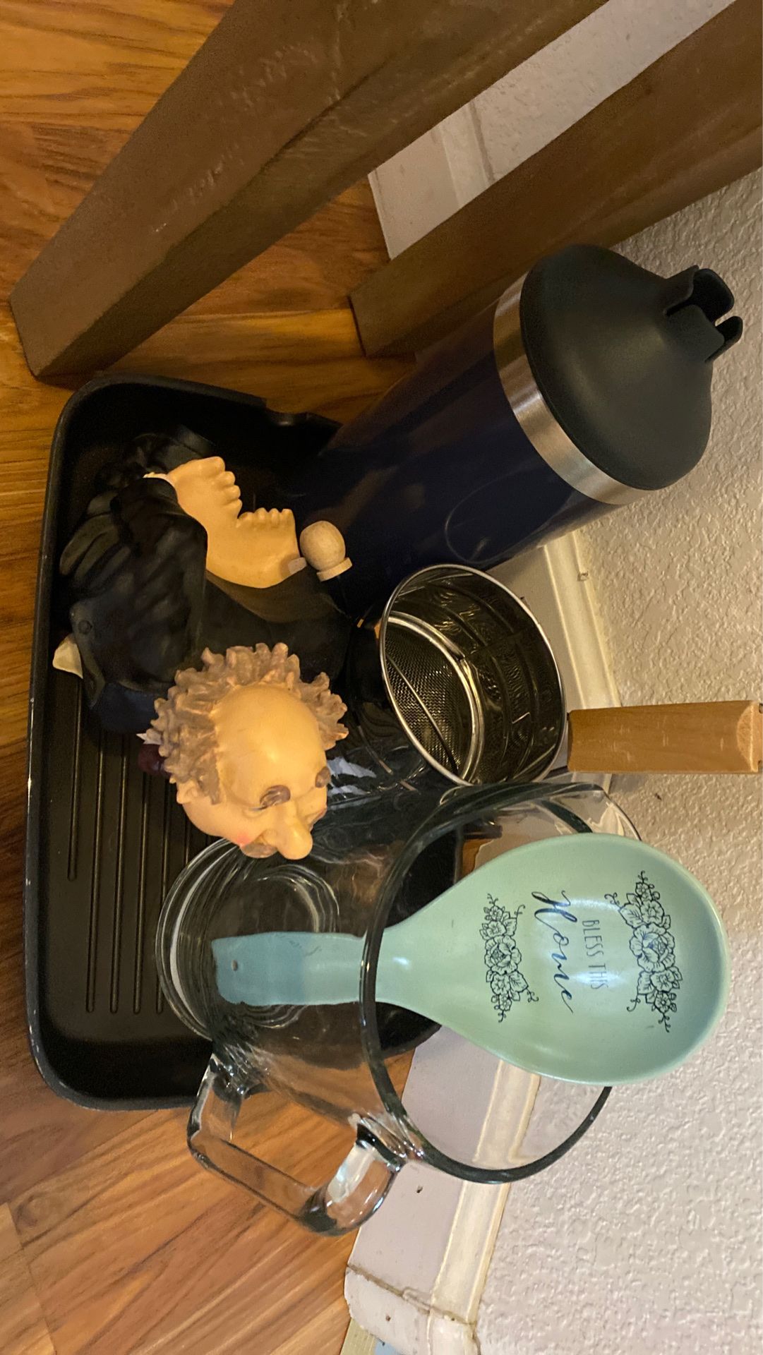 IKEA Stove top grill, wine chiller, wine holder, glass pitcher, cooking spoon holder and powder sugar sifter.