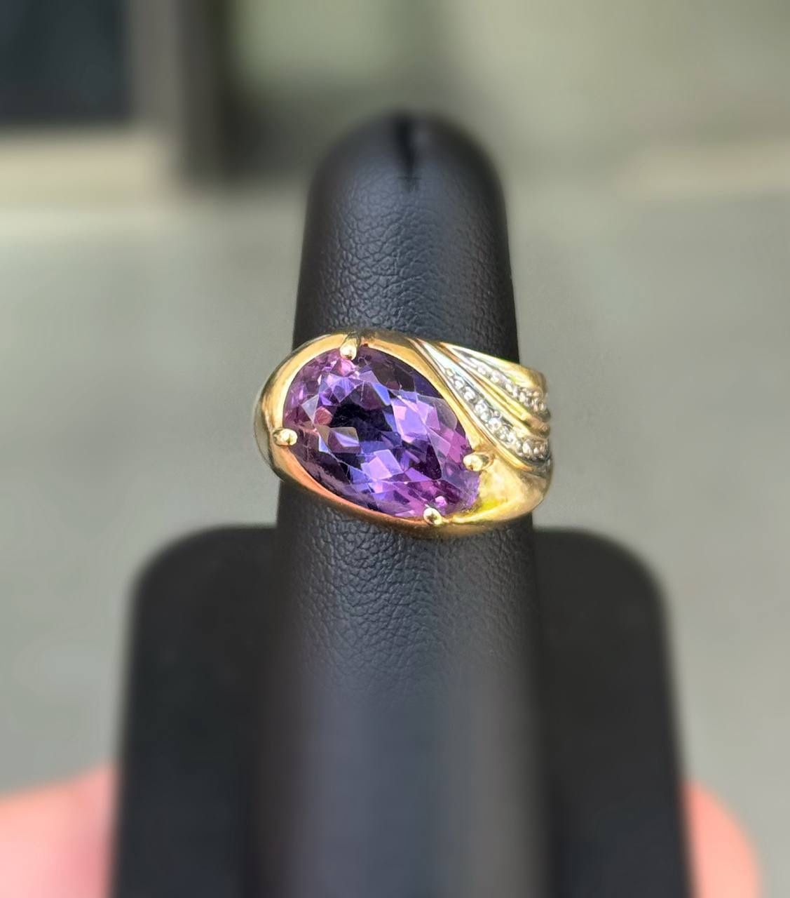 This gorgeous purpurite stone and natural diamond ring is made of 10k solid yellow gold. Total weight: 4.90 grams. The total carat weight of the purpurite stone is approximately 3.00CTW. The total carat weight of the natural diamonds is approximately 0.10CTW. βοΈππIt is very beautiful piece. Perfect gift! β€οΈππ We buy Rolex and Audemars, patek . Do layaway in VIP PAWN Coral Springs π₯ππΈ