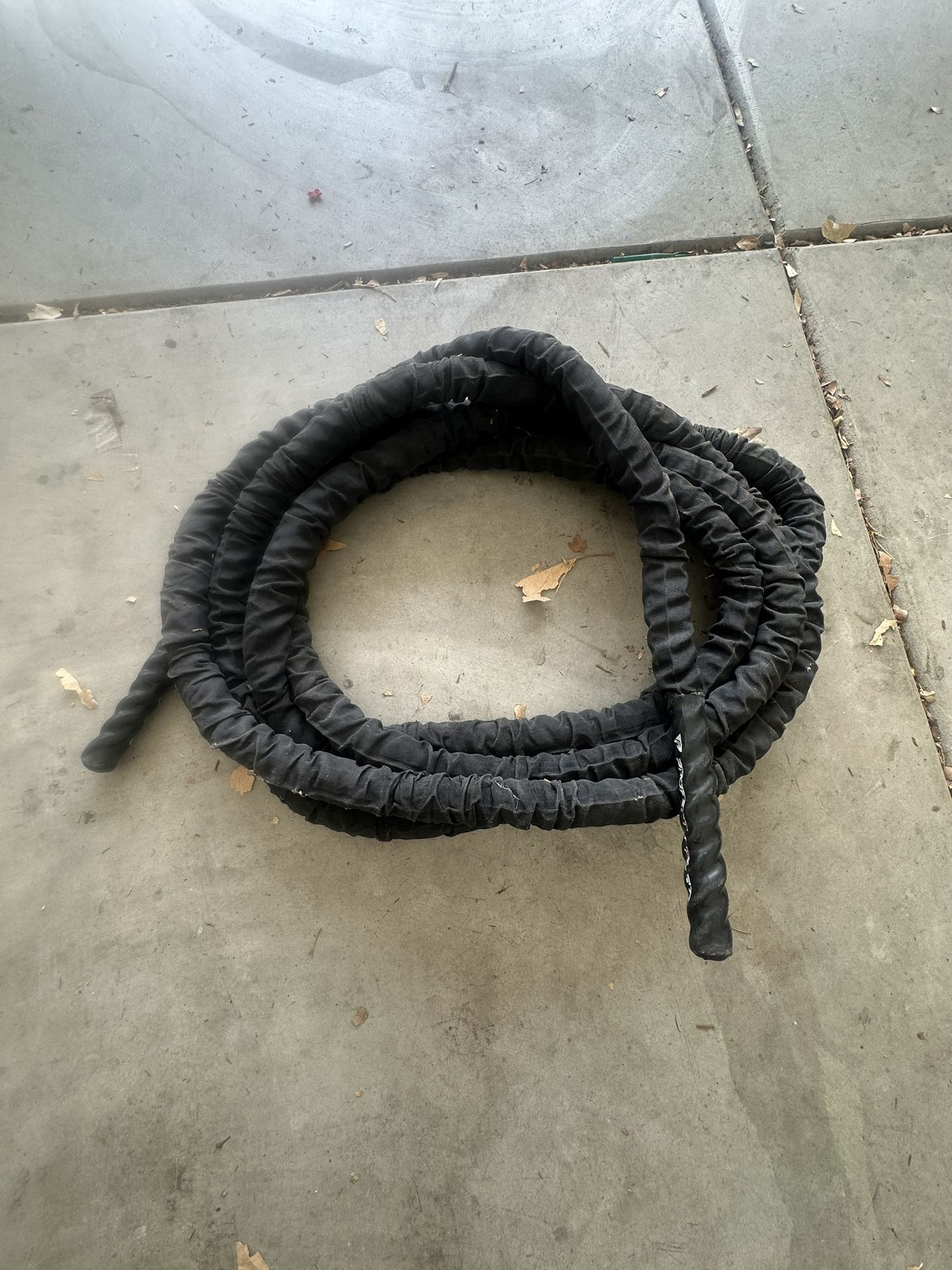 Battle Ropes 50 ft Heavy Duty Battle Rope with Protective Sleeve Black, Plastic, ABS Grip, Adult Strength Training, Cardio, CrossFit Priced to sell Cash or Venmo accepted Local pick up only