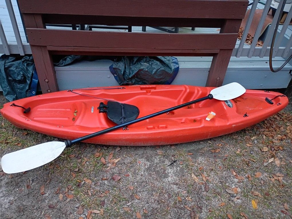It's 10ft, no holes in it. Will not sink. The back rest for the seat needs to be fixed, but it floats. Max time for me in the water on it was 6 hours. I am willing to Trade.