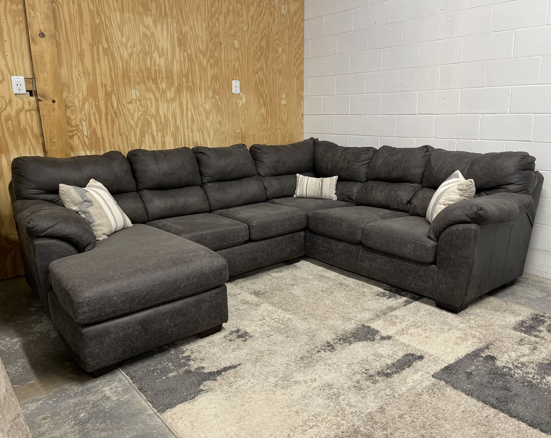 Used charcoal gray u-shaped sectional In great shape! From a smoke free home. Clean and well kept, a couple of small holes/scuffs from moving them around Measures about 119” x 97” $800 Located in north Lubbock. Delivery available for $100