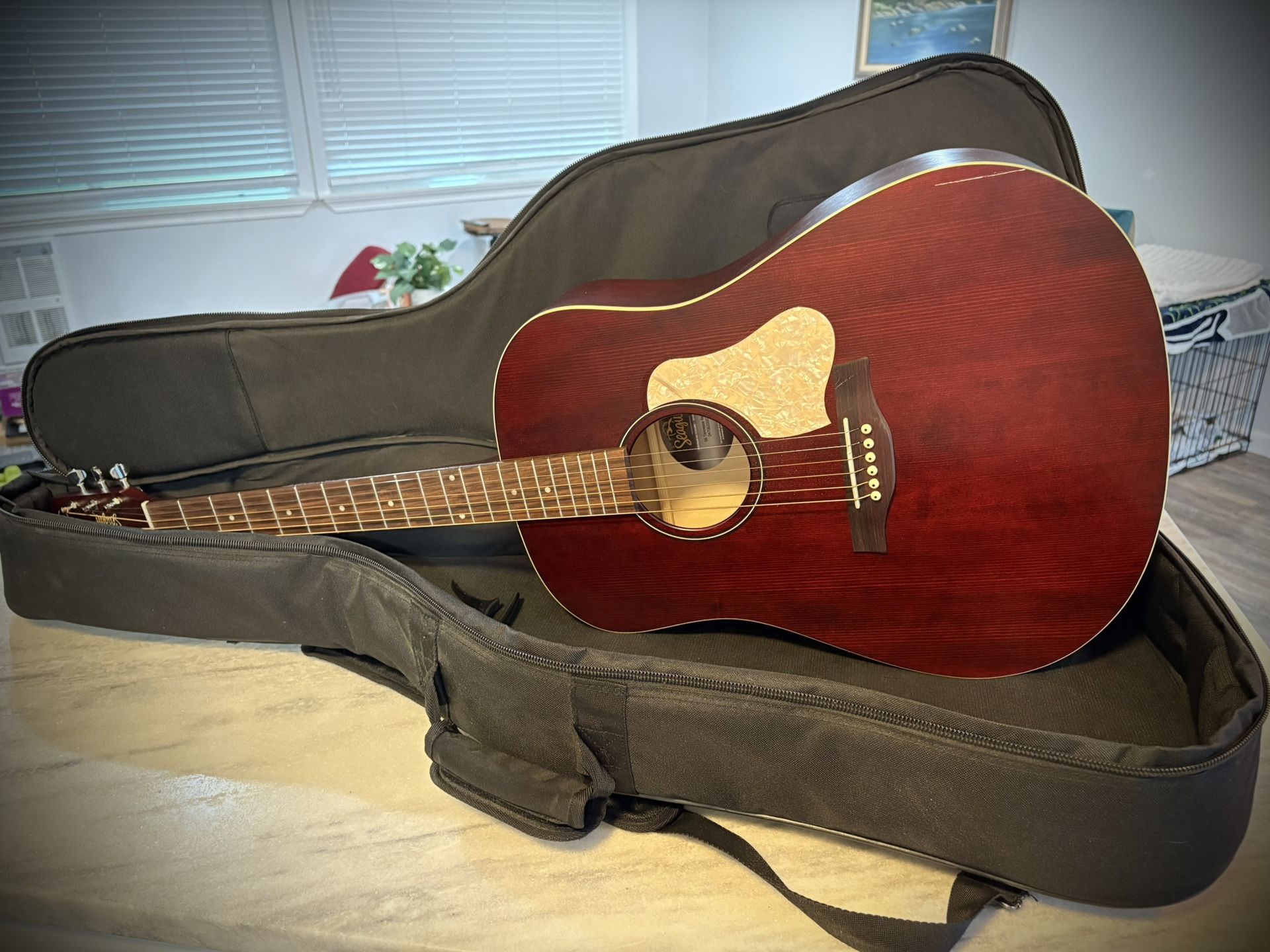 Beautiful Seagull S6 Tennessee Red LTD acoustic guitar with bag Plastic still on the pick guard One small scratch during shipment as pictured - not a crack. Capo and guitar pick included Don’t play it enough so on to the next