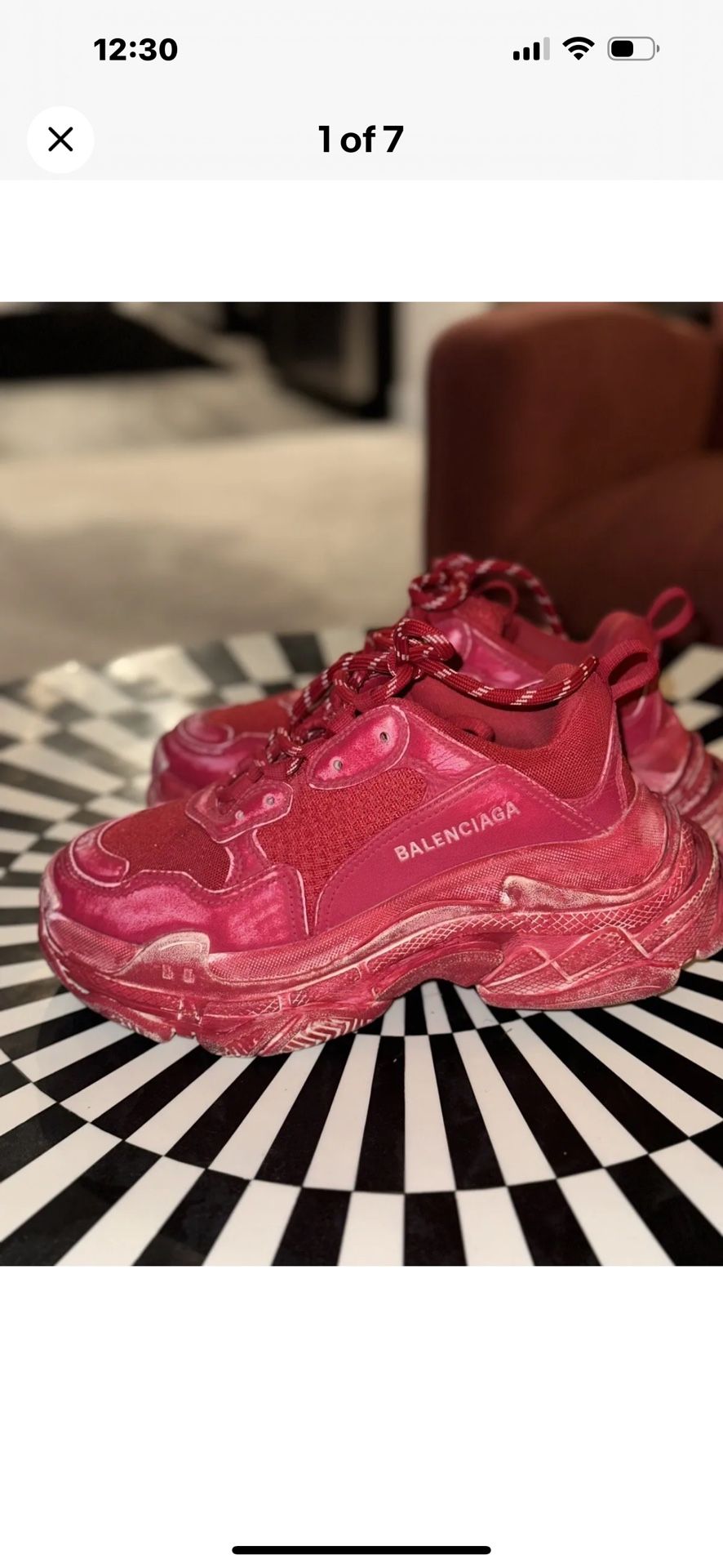 nciaga Triple S sneaker is a must-have for any fan of stylish and comfortable footwear. Worn only a few times . Made in Italy, this unisex athletic shoe features a lace-up closure and dark red color that is sure to turn heads. With a US shoe size of 7, it's designed to fit like a dream, and the Balenciaga brand name is all the assurance you need that you're investing in a quality product. The Triple S model is one of the most popular in the line, so don't hesitate to add it to your collection. Looks brand new !