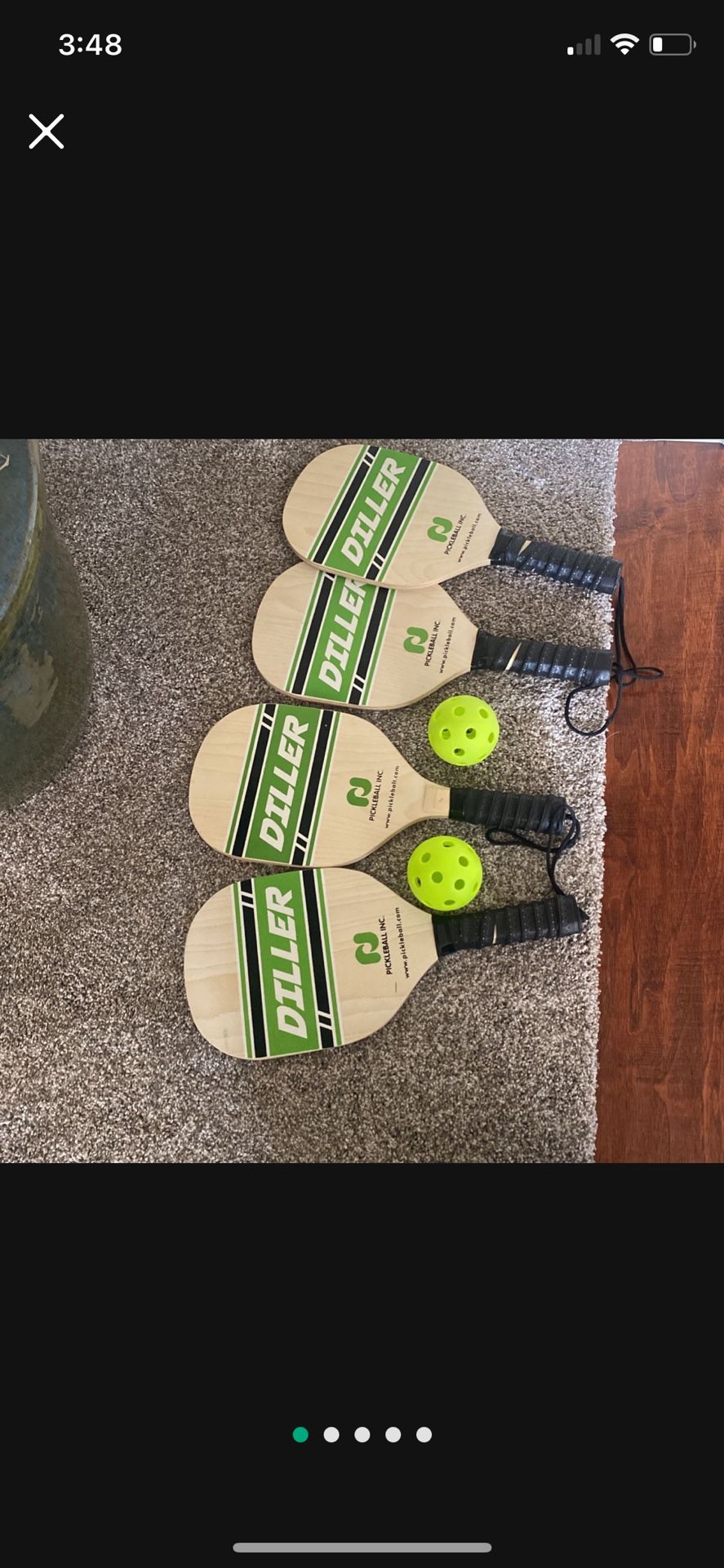 Selling as a set of four or a set of two with one ball per two paddles. Beginner set. Comes with the rules. $80 firm for all four paddles and two balls or $40 for half.