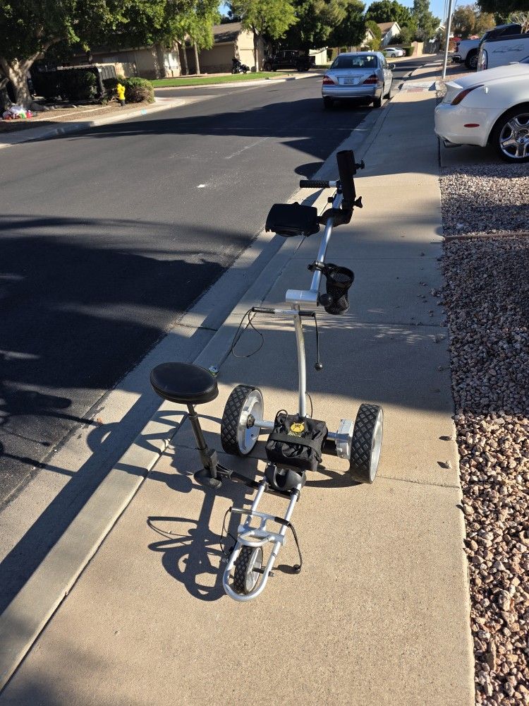Bat Caddy X4. Only used twice on the course. Like new. Battery just replaced because it sat too long without a charge! These sell for $500. Will get 27 holes on a single charge per manufacturer. Get great exercise on the course without lugging the clubs. This will make a great gift for Christmas and meet your new resolutions for more exercise! Will fit in trunk of the car with clubs.