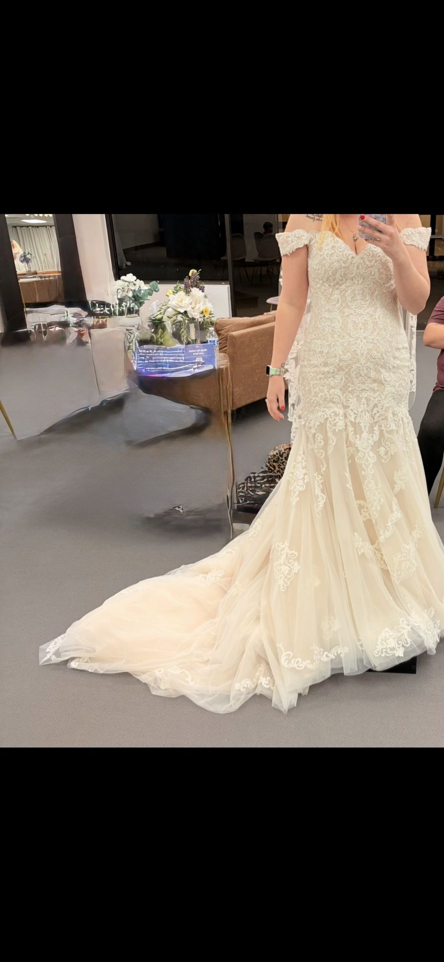 Size 10 wedding dress. Switched dresses so I don’t need this. Never worn still has tags on it. $300.
