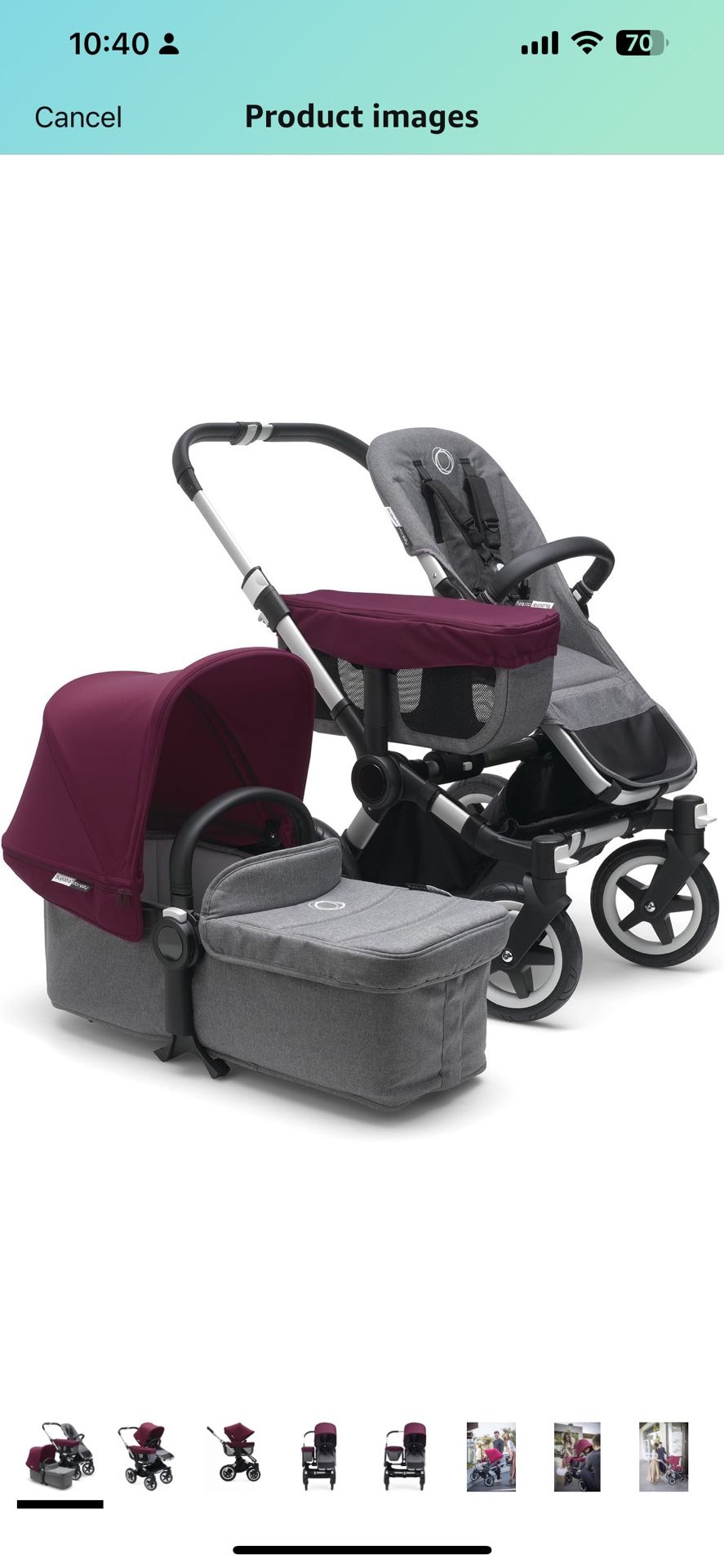 Bugaboo Donkey 2 Mono Baby Stroller, Foldable Stroller, Converts into Twin Side-by-Side Sibling Stroller, from Birth Baby Stroller, Infant Stroller, Multiple Seat Positions, Grey/Red. It has very minimal scratches. The bassinet is brand new. Never used it. I’m also including the car seat converter. I had a nuna car seat and it fit perfectly.