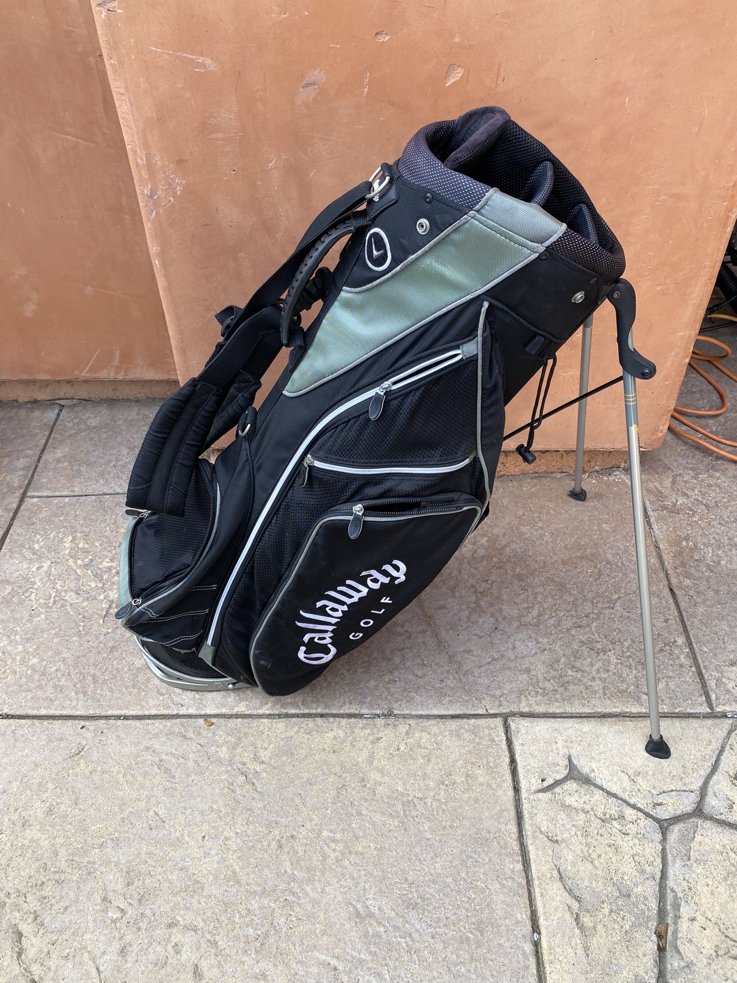 Callaway Carry bag Preowned - check photos 6 dividers . Cloth is coming off one divider but could probably be fixed Light weight Zippers and pockets are all functional Overall good condtion.