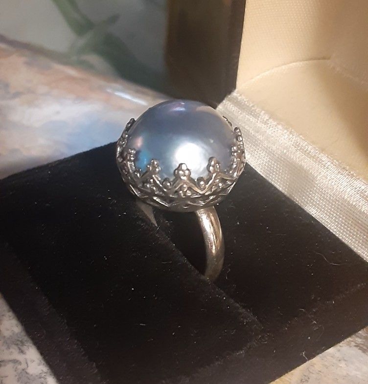 Vintage BLUE MABE PEARL set in STERLING sz 7.5
