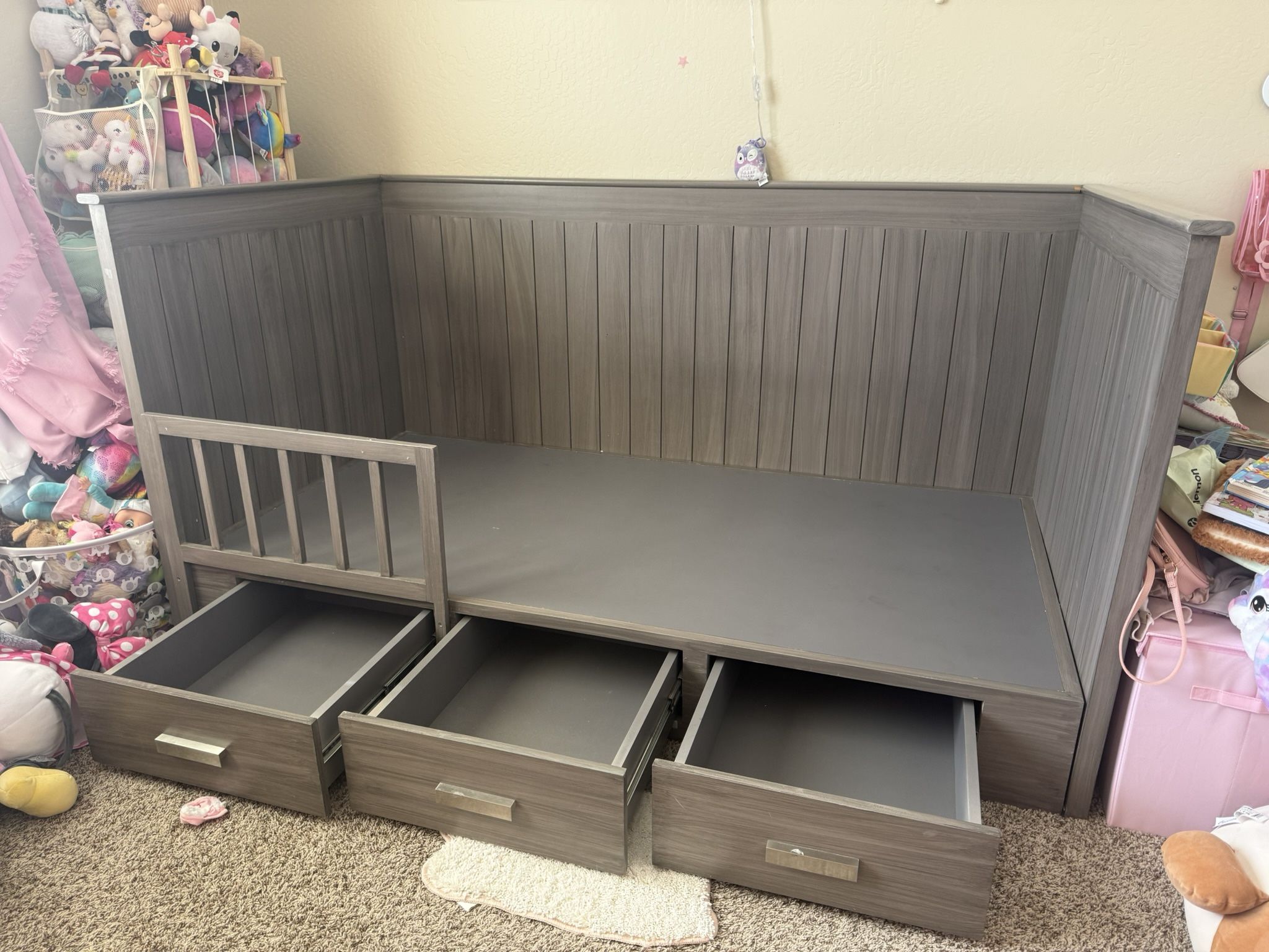 -Fine real wood material -Grey -Fits twin mattress -Good for a toddler/ kid or teen.