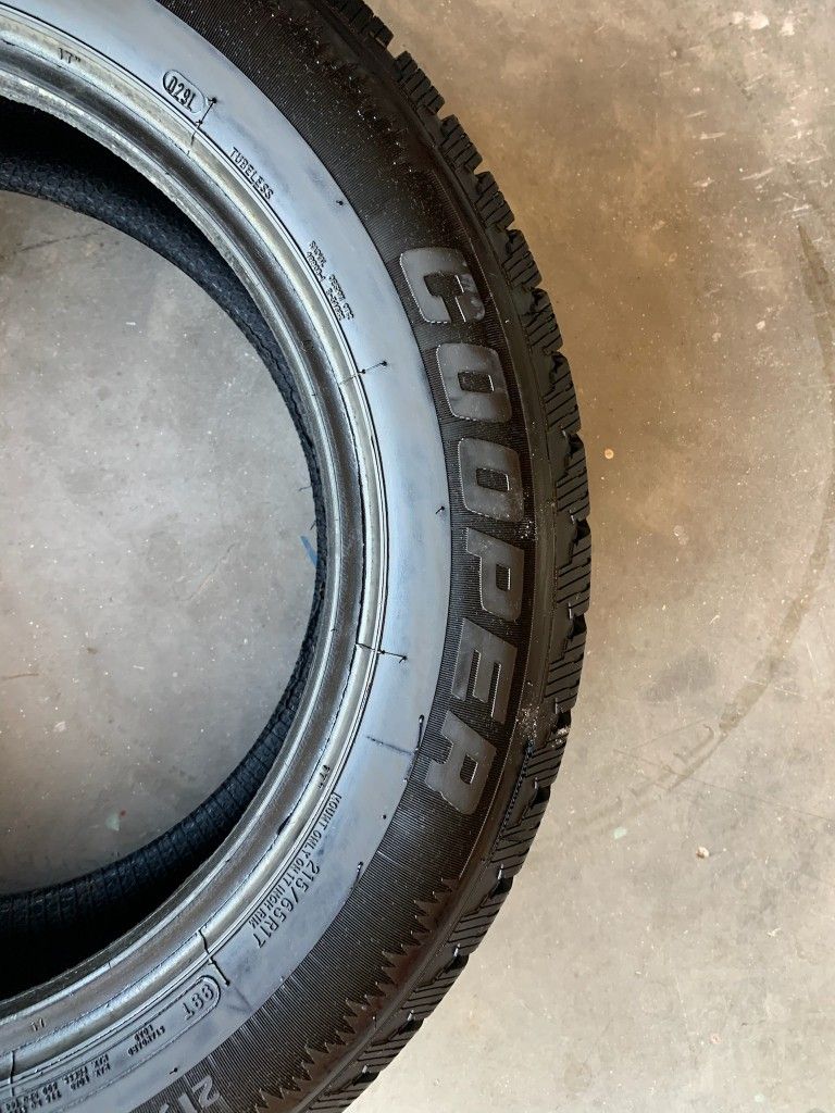 Hello, selling a full set of Cooper weather master tires with just 100 miles on them almost new for 380.00. Tires are in the garage to prevent sun damage. Thank you.