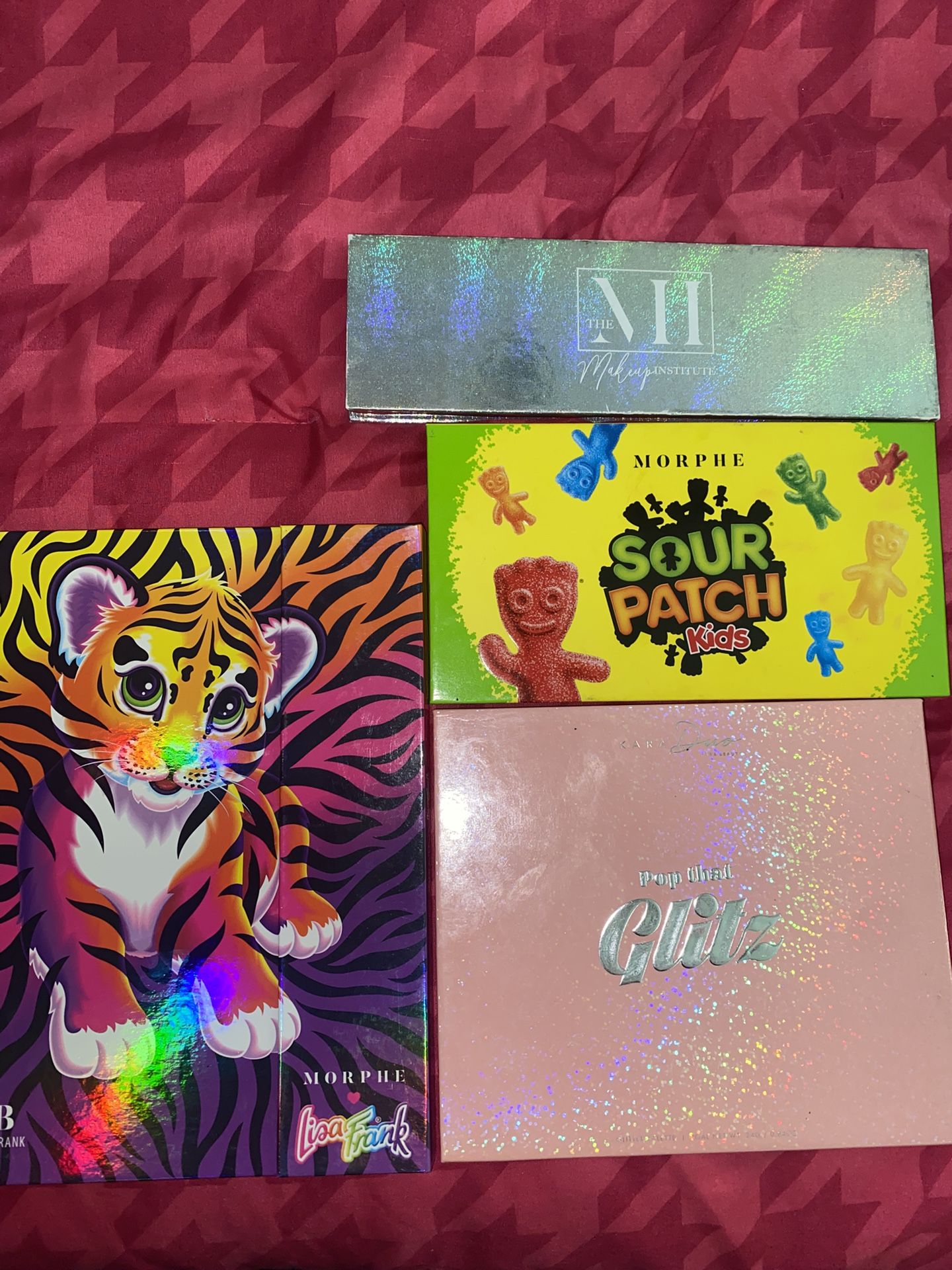 Colorful Morphe x Lisa Frank eyeshadow palette with vibrant, playful shades. Gently used and still in great condition. Fun Morphe x Sour Patch Kids palette with bright, candy-inspired colors. Lightly used and perfect for bold looks. Kara Beauty Pop That Glitz palette featuring shimmery and glitter shades. Great for glam or party looks. Professional-style eyeshadow palette from The Makeup Institute. Neutral and wearable shades, lightly used.