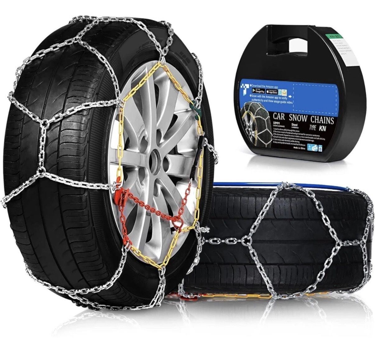 FlySwan KN-100 Snow Tire Chains for Car, SUV, Pickup Trucks, Set Of 2 - BrandNew. $25 Firm Features & details ★High-quality materials: The tire chains are made of high quality and durable steel that will not damage the tires, while reducing noise, wear and tear and ensuring durability. ★Easy to install and dismantle: The car safety chain is easy to install, no jacks, no need to remove the tires, and has a simple tie-down strap. ★Road rescue in emergency situations: It is easy to carry and store as an essential tool for travel, snow, mud, climbing, icing and other emergencies. It is also suitable for most vans, trucks, cars. ★Please double check your exact tire size to make sure these tire chains will fit your equipment properly. Do NOT just buy based on the model number. To ensure maximum life and performance, tire chains must be installed as tightly as possible. ★Caution: Drive carefully in bad weather and keep the speed below 40 km/h. If the chain on the cleat breaks off, please stop using it immediately. Do not put the chain on iron wheels and avoid using it on sharp objects, dry sidewalk or flat ground. Stop using it when you perceive an abnormal sound, then buy a new chain when it is worn out by more than 31%.