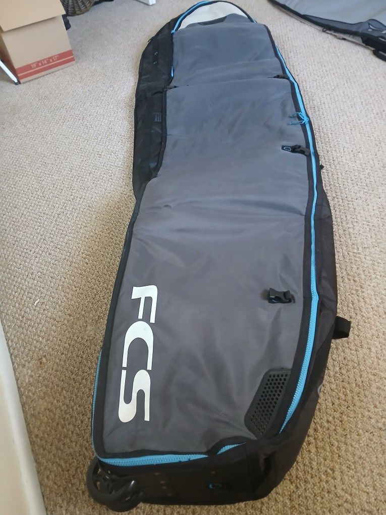 9'2" FCS TRAVEL BAG in excellent condition. Fits 3 boards. Two large wheels for rolling. Heavy duty straps for carrying. Local pick up and cash only.