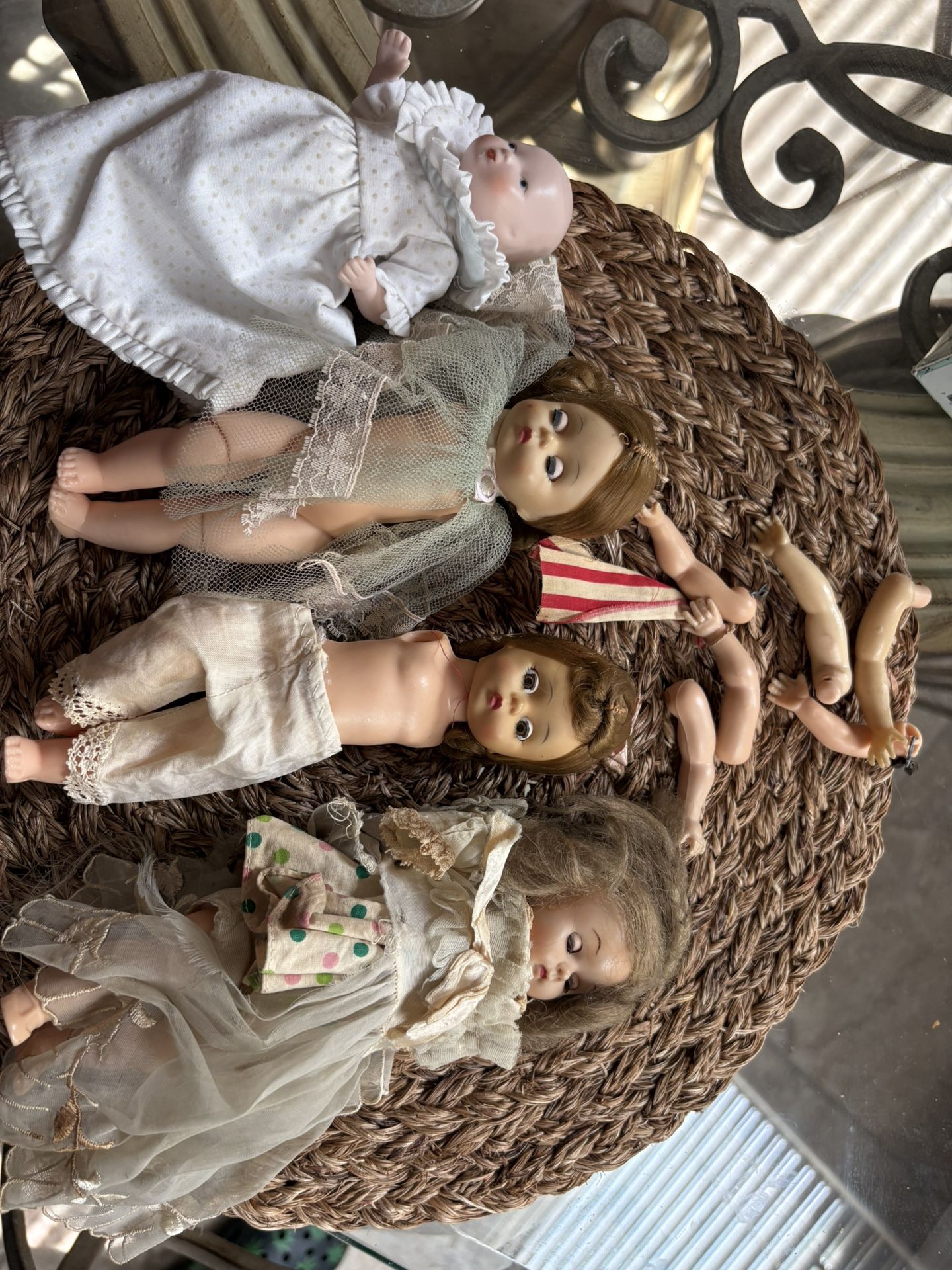3 vintage Madame Alexander dolls. Arms have come off. But are with it so you can have it doctored back.