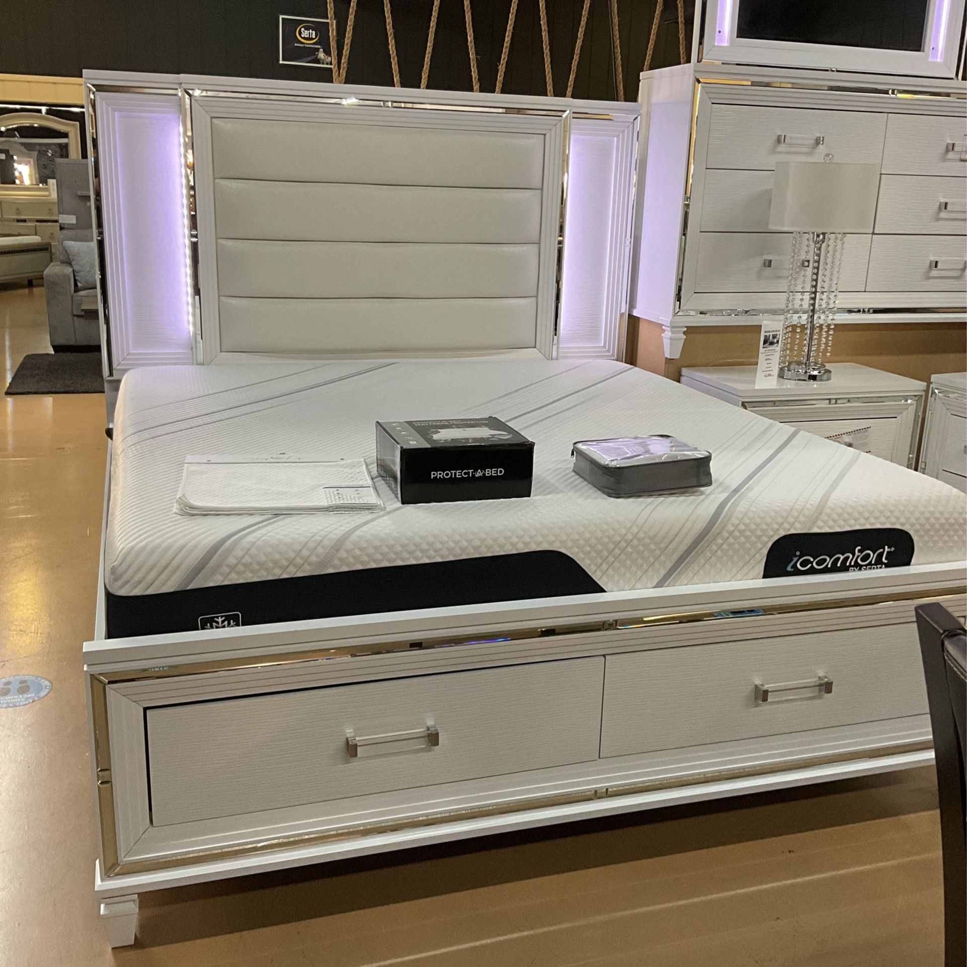 Queen bed frame only $959+tax King or cal king bed frame $1159+tax Bed frames only mattress is not included! Can make it a set prices do vary Dresser $699+tax Mirror $249+tax Nightstand $319+tax Chest $559