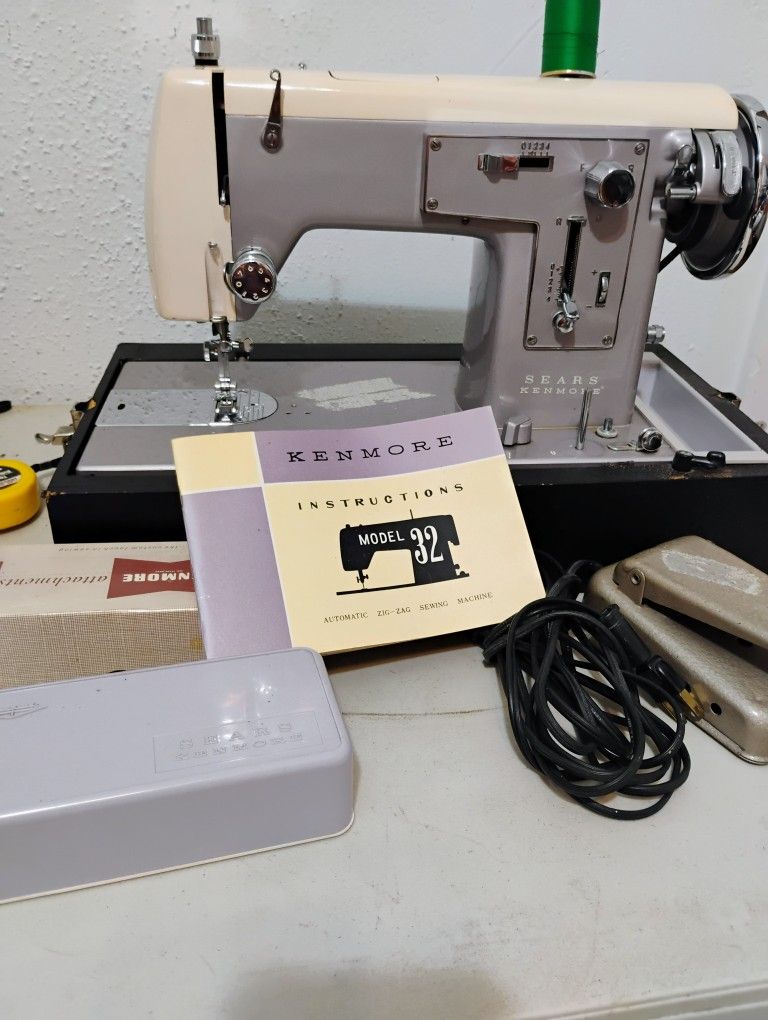 Antique Model 32 Kenmore Sewing Machine With All Attachments And Carrying Case