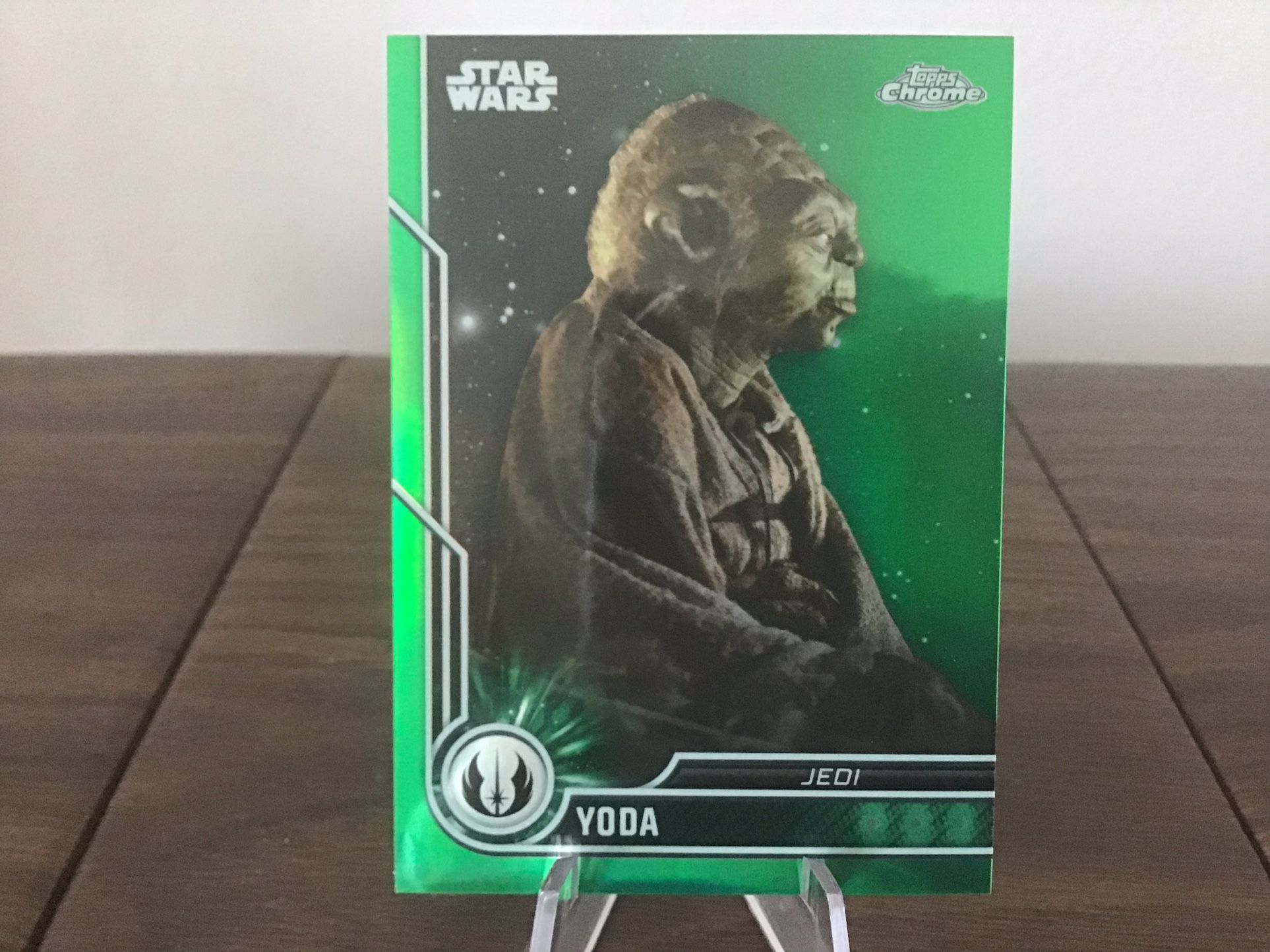 2023 TOPPS Chrome Star Wars Yoda card #51 Green Refractor short print 28/99. Located at beach and terry in Huntington Beach.