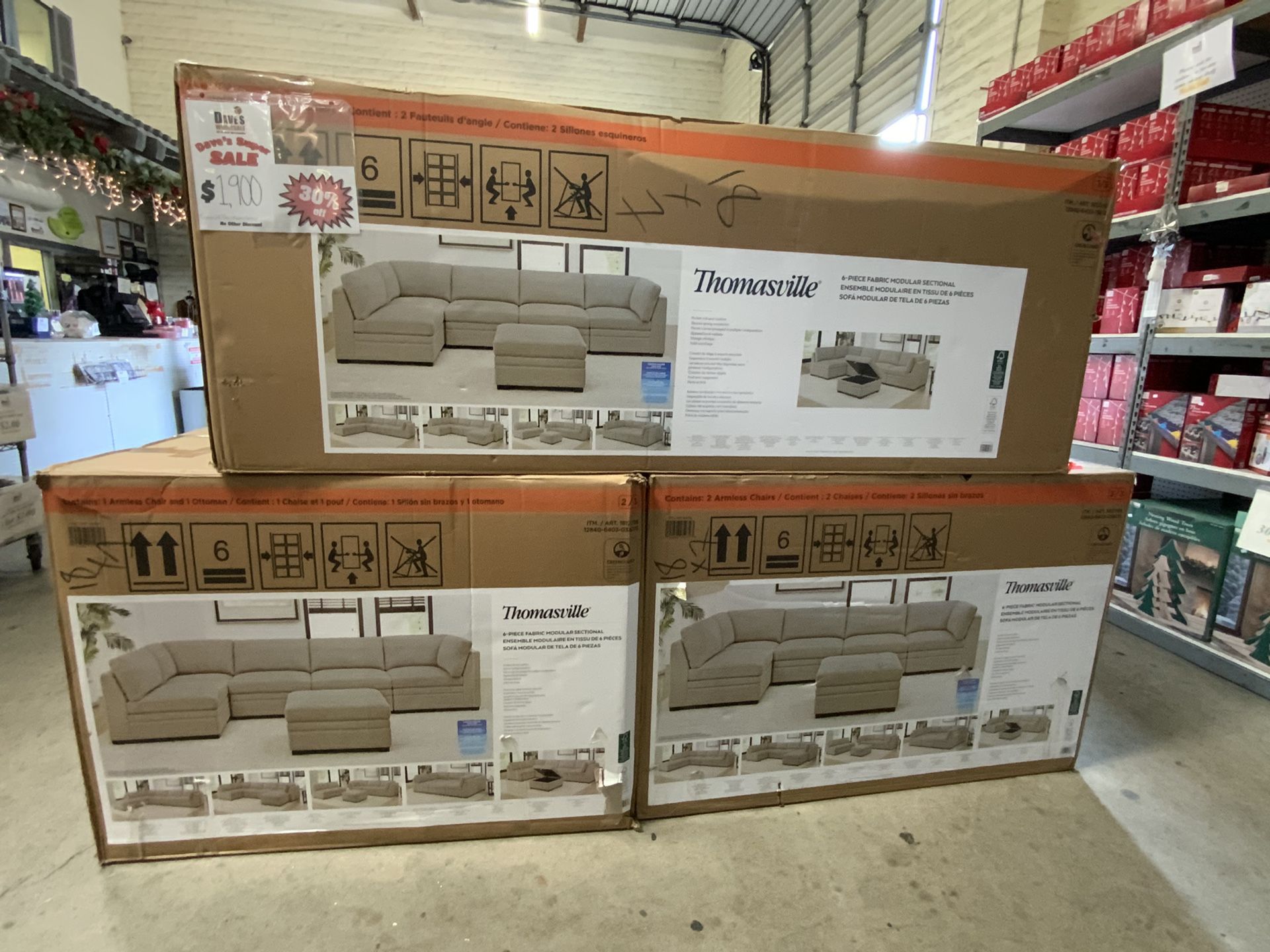 Thomasville 6 Piece Fabric Modular Sectional With Storage Ottoman